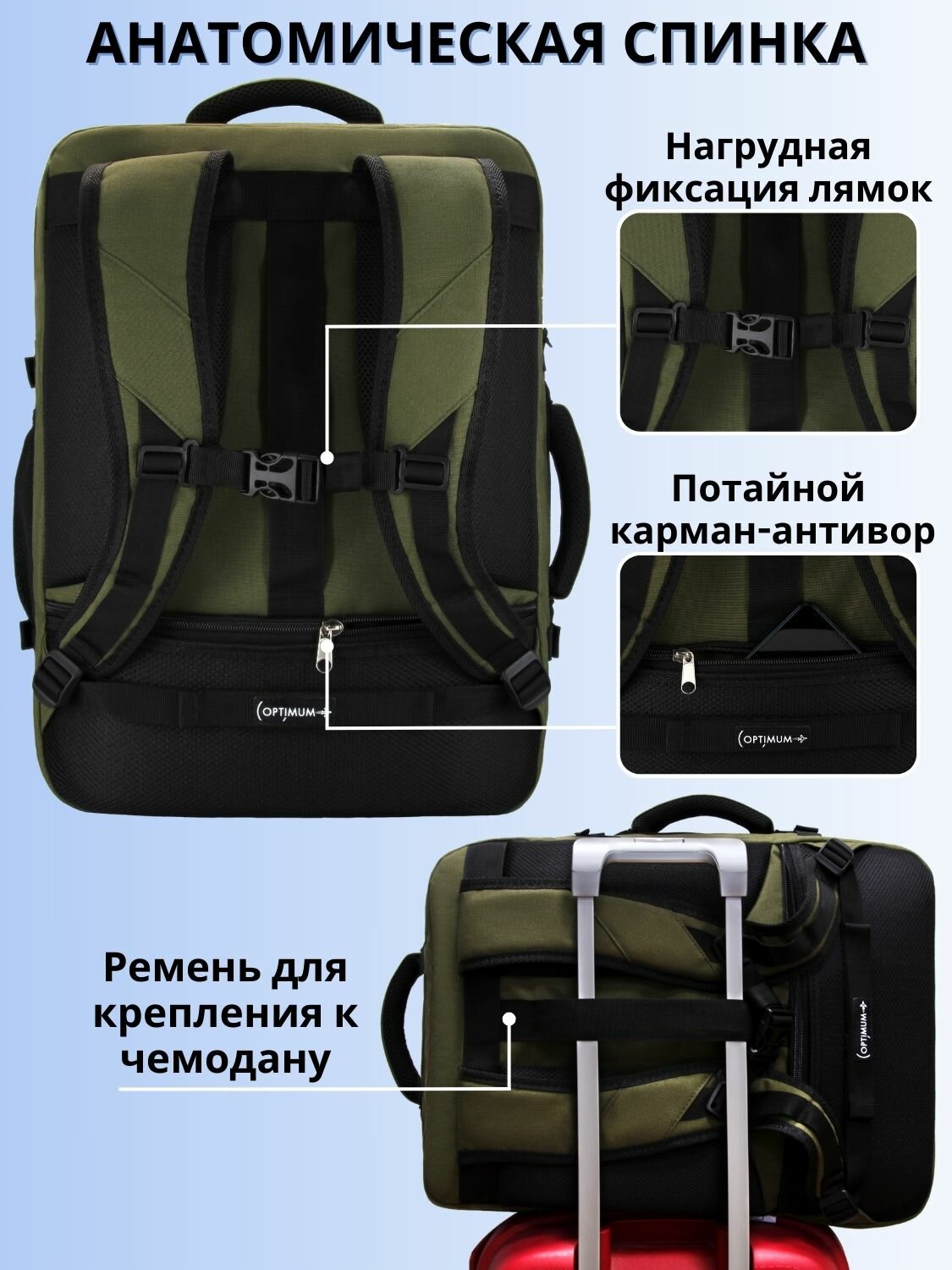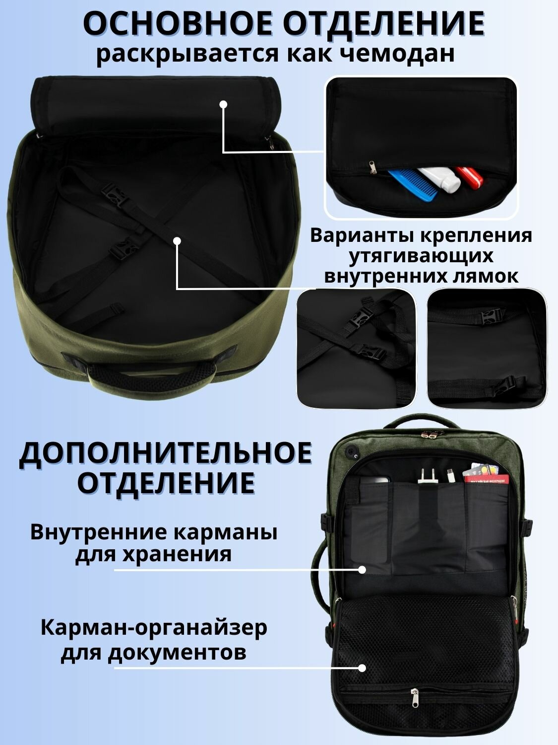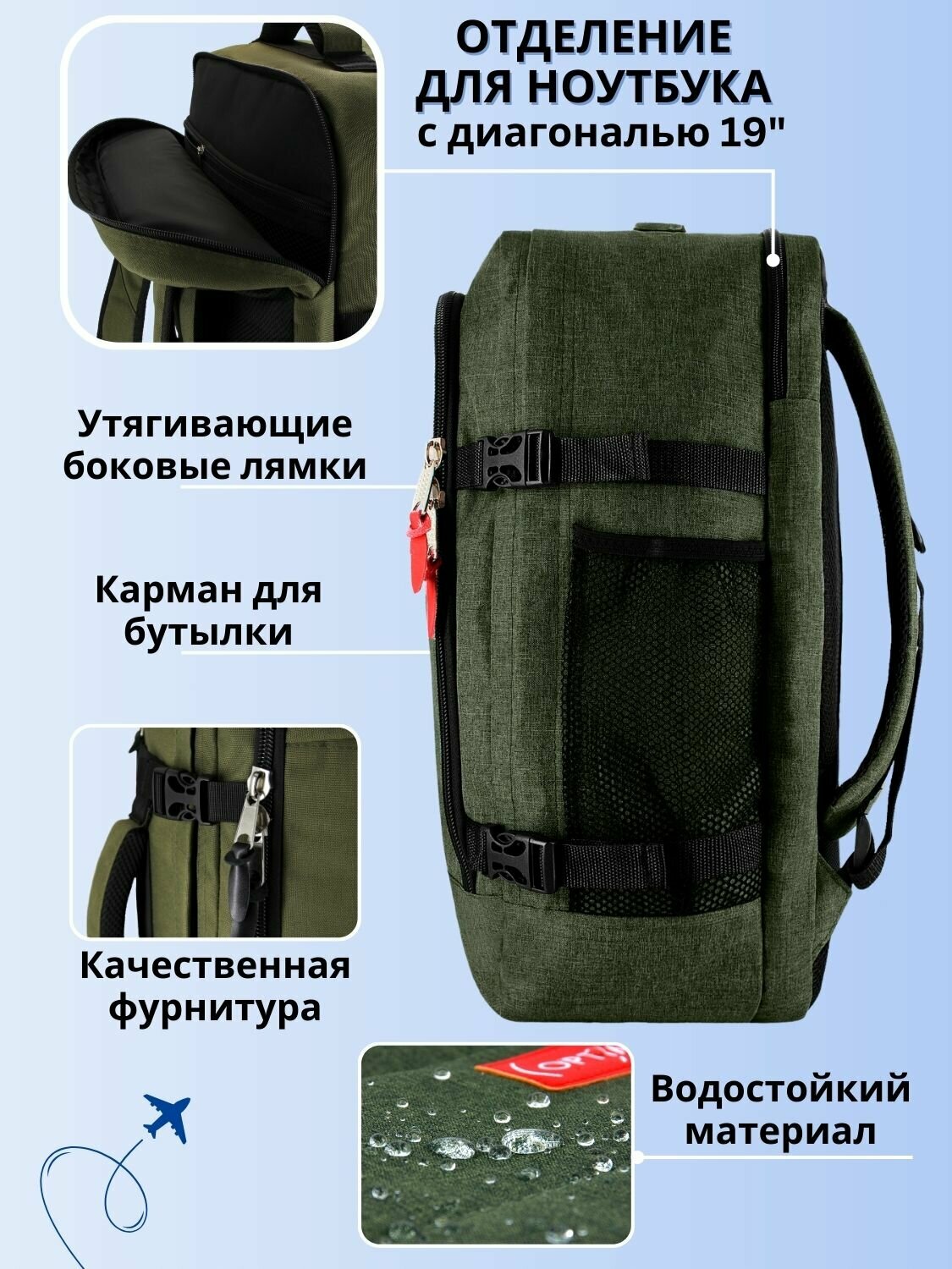 Рюкзак сумка чемодан ручная кладь S в самолет дорожная 44 л, хаки