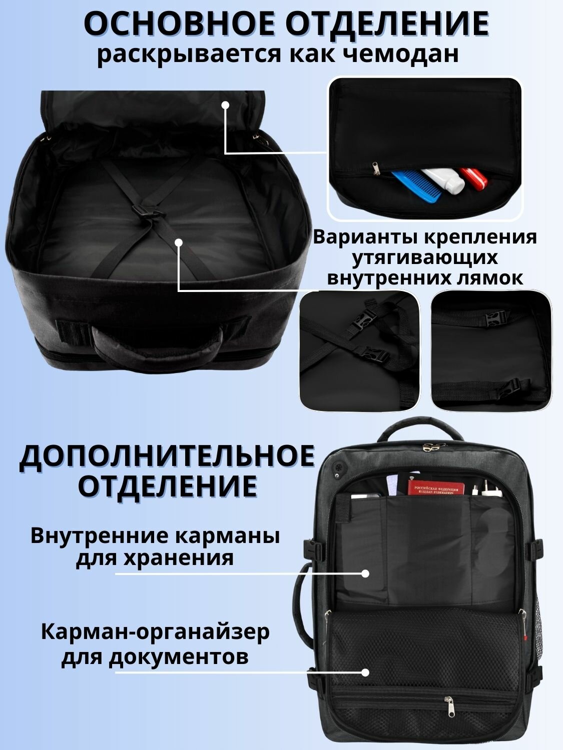 СохранитьРюкзак сумка чемодан ручная кладь 55х40х20 в самолет, темно-серый интересное: