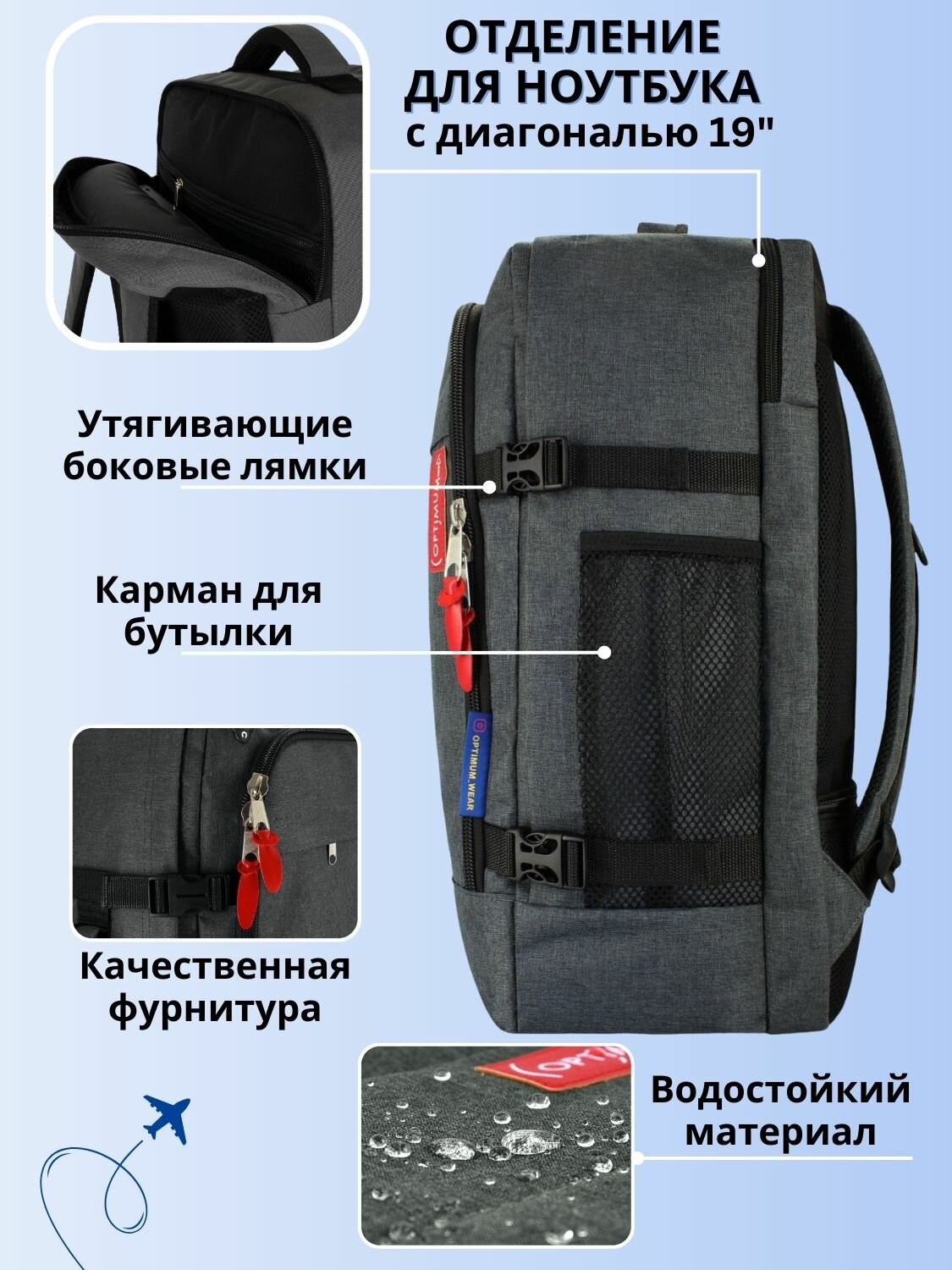 Рюкзак для путешествий дорожный ручная кладь 55х40х20 в самолет 44 л., темно-серый