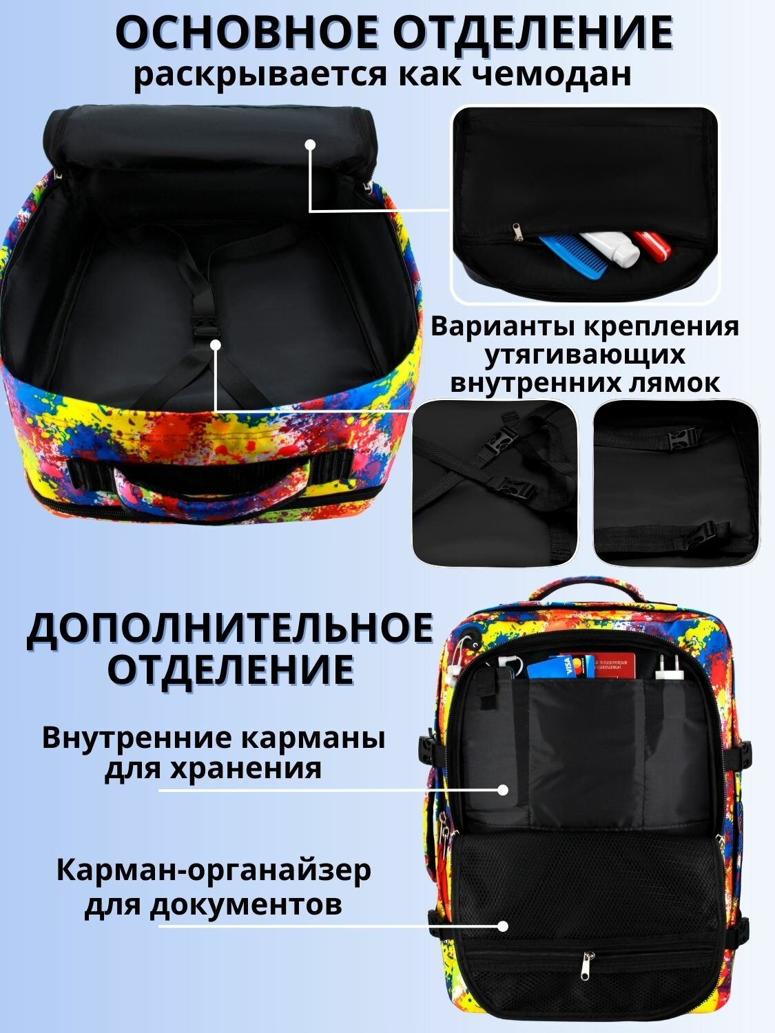 СохранитьРюкзак сумка чемодан ручная кладь 55х40х20 в самолет, холи интересное: