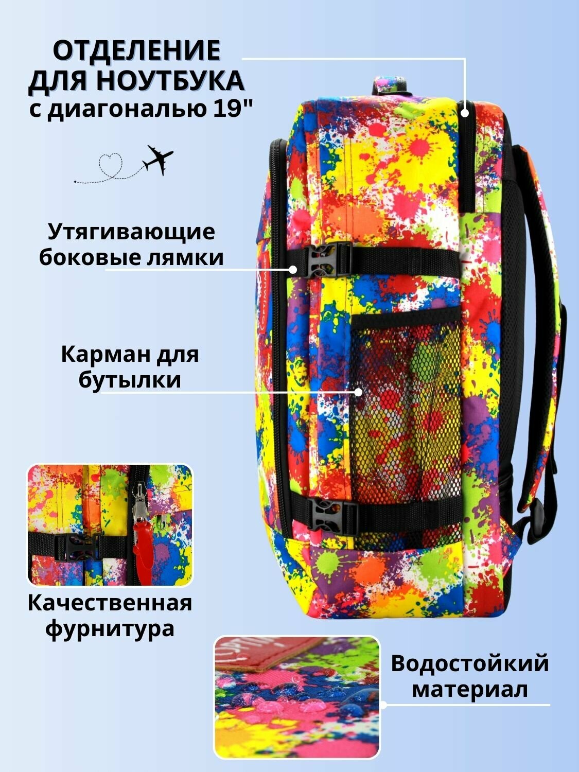Рюкзак сумка чемодан ручная кладь S в самолет дорожная 44 л, колибри