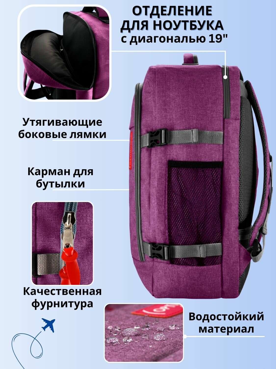 Рюкзак для путешествий дорожный ручная кладь 55х40х20 в самолет 44 л., сиреневый