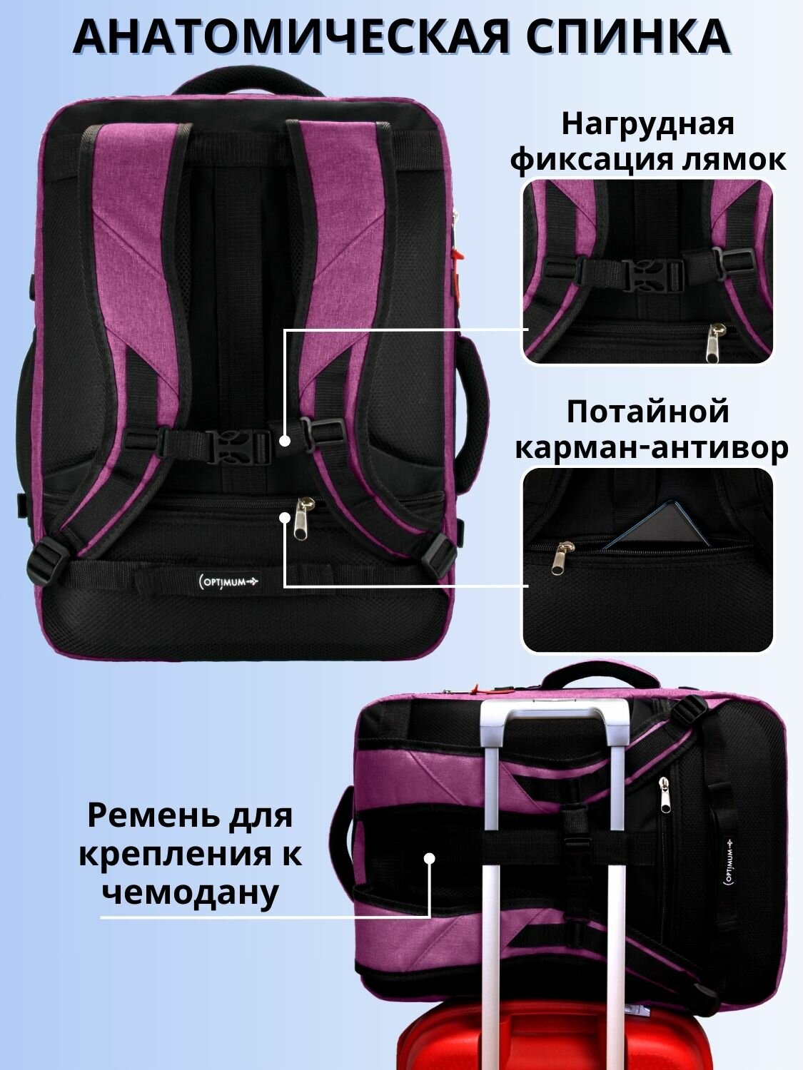 Рюкзак сумка чемодан ручная кладь S в самолет дорожная 44 л, сиреневый