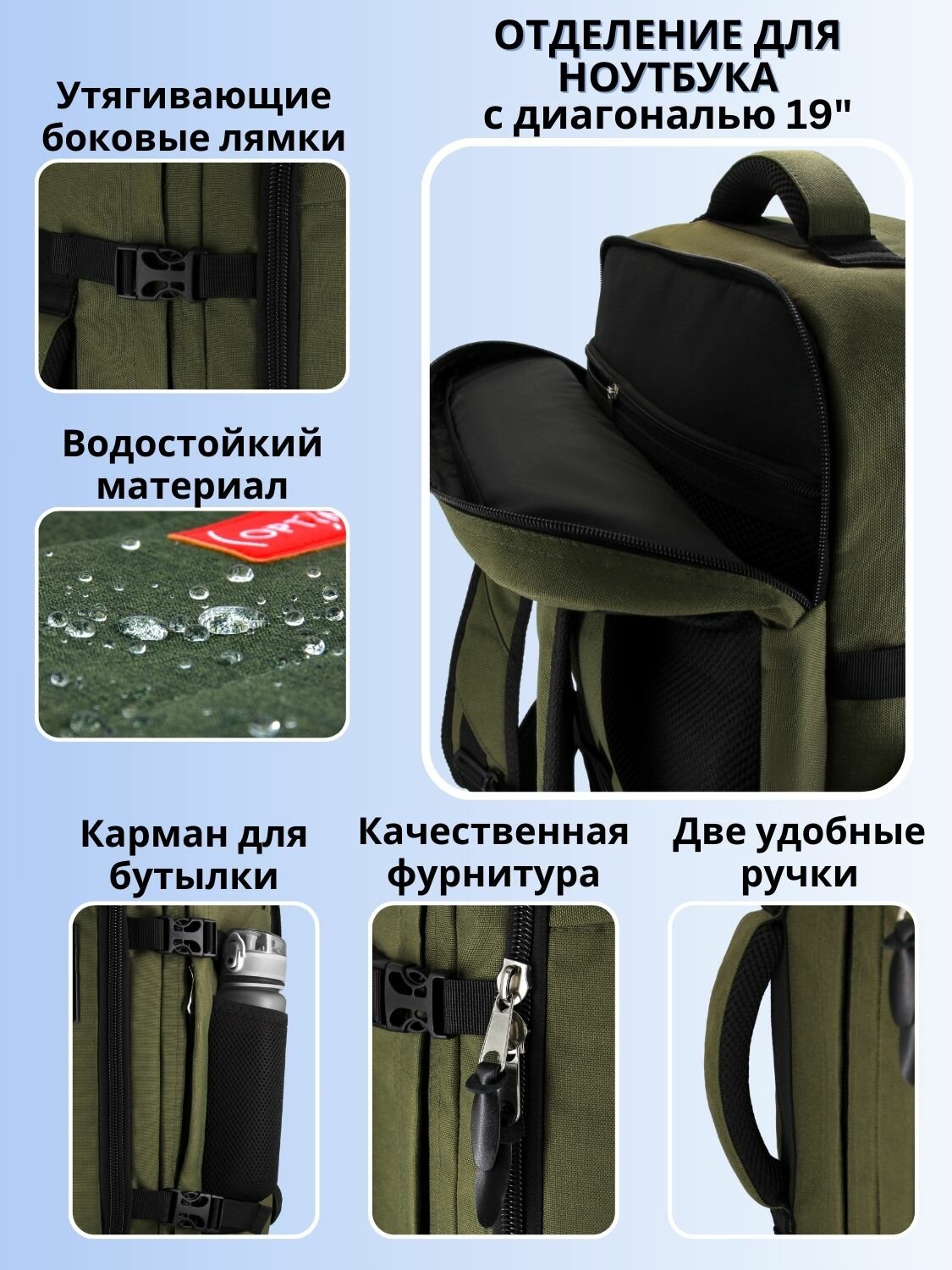 Рюкзак сумка чемодан ручная кладь S в самолет дорожная 44 л, хаки