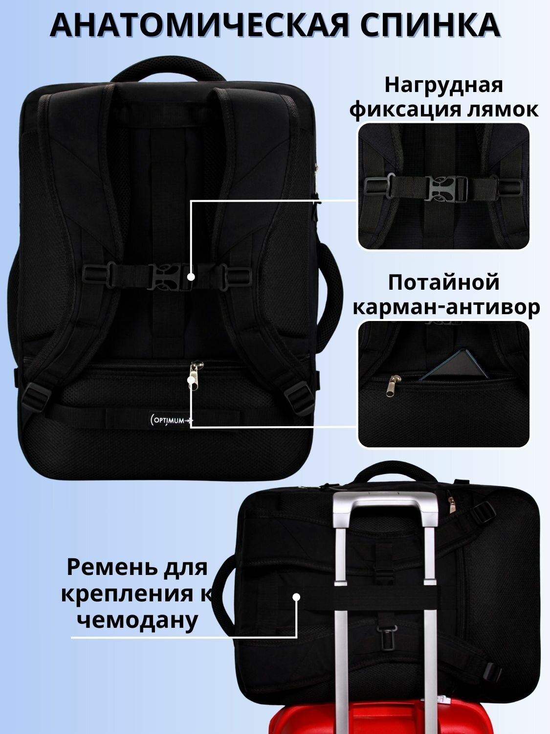 Рюкзак сумка чемодан ручная кладь S в самолет дорожная 44 л, черный