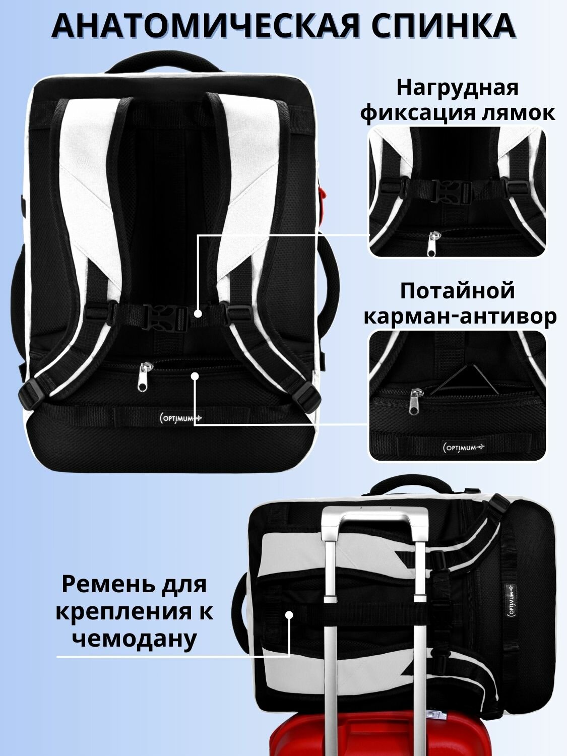 Рюкзак для путешествий дорожный ручная кладь 55х40х20 в самолет 44 л., белый