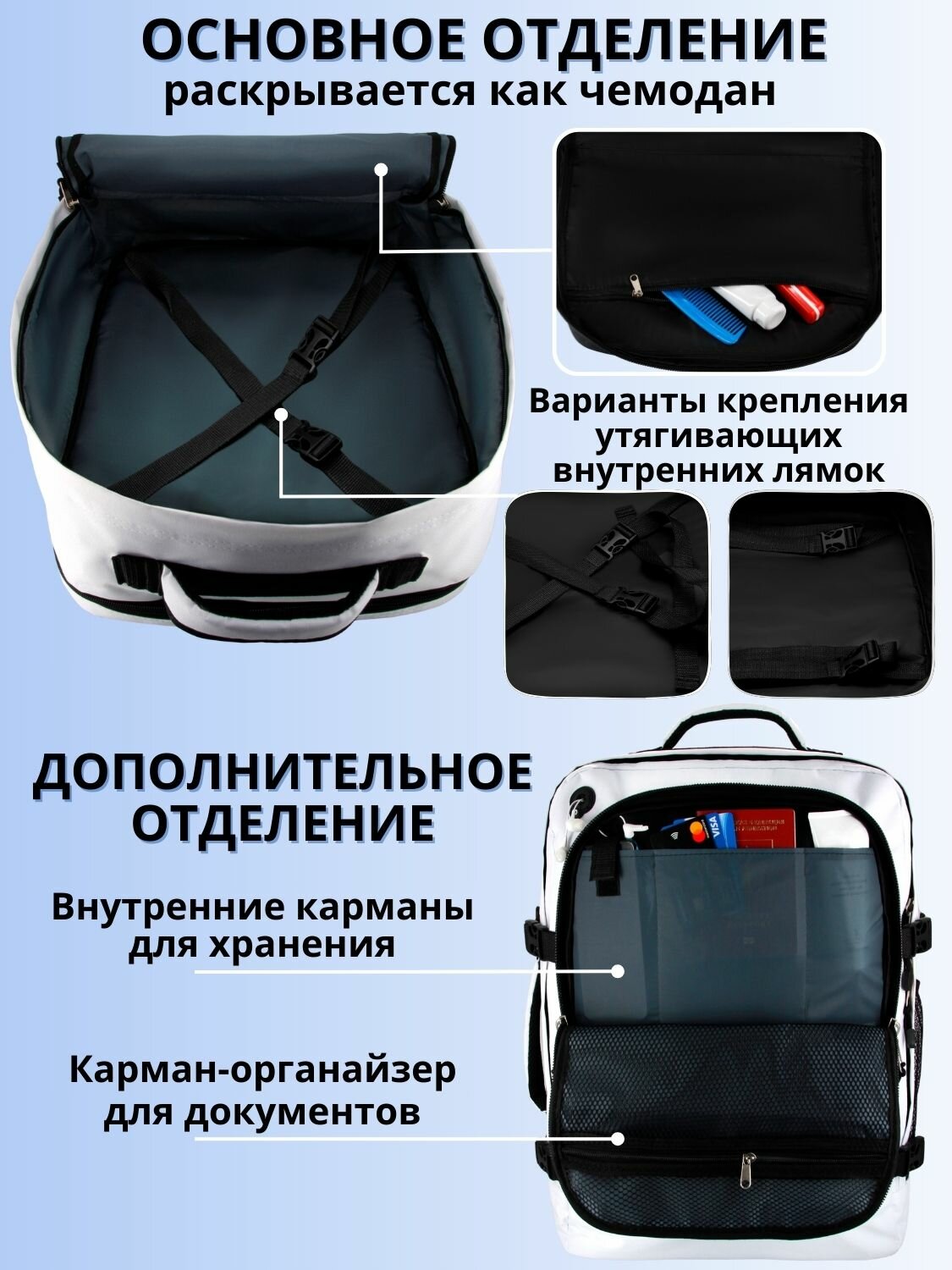 СохранитьРюкзак сумка чемодан ручная кладь 55х40х20 в самолет, белый интересное: