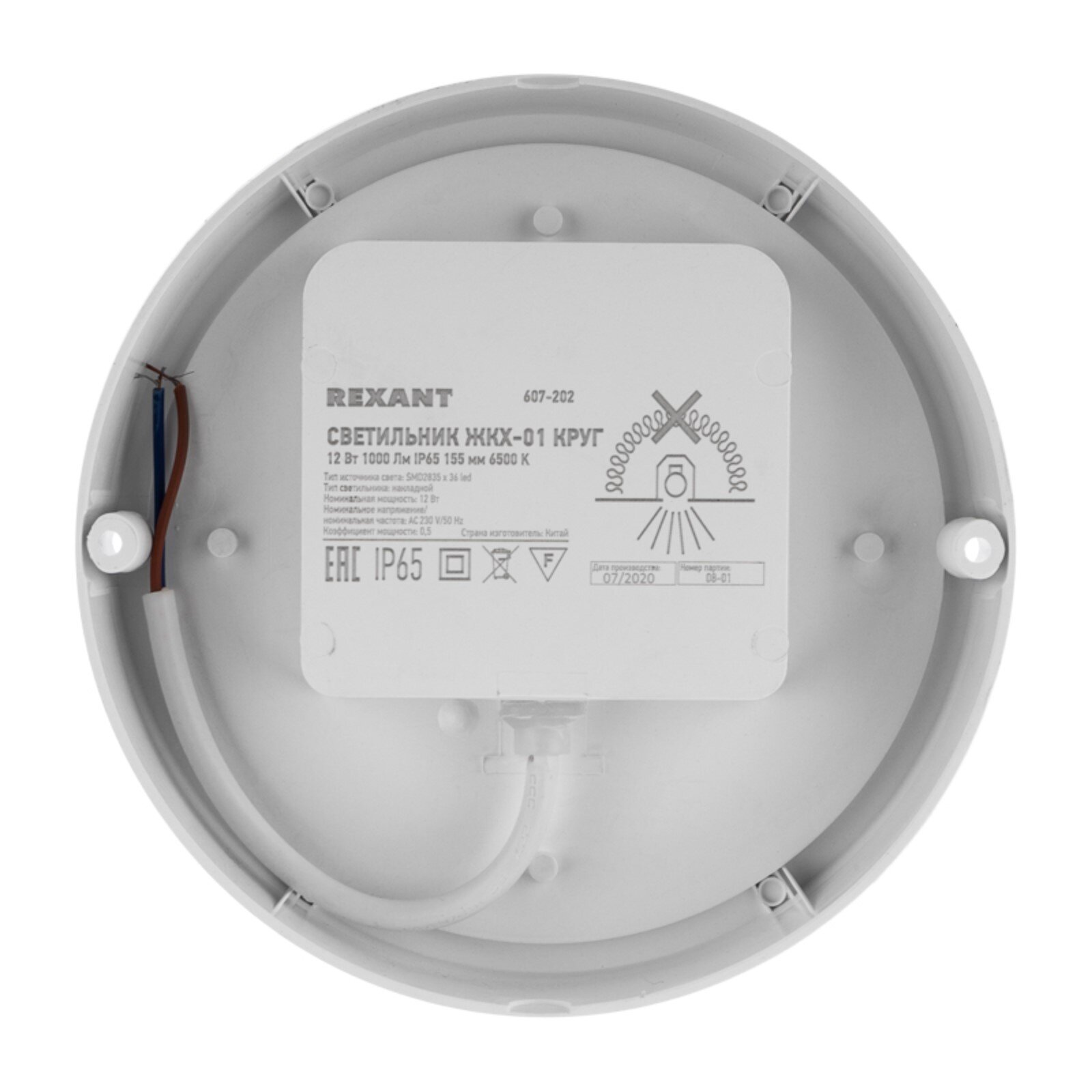 Светильник светодиодный пылевлагозащищенный REXANT ЖКХ-01 круг 12 Вт 1000 Лм IP65 155 мм 6500 K