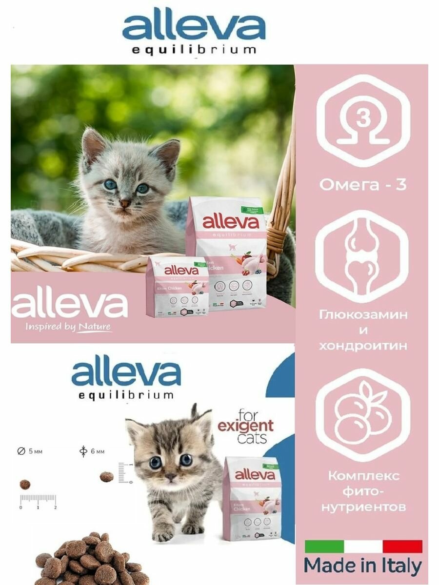 ALLEVA Equilibrium Kitten / Аллева Эквилибриум монобелковый корм сухой для котят и беременных кошек с курицей, 1,5 кг
