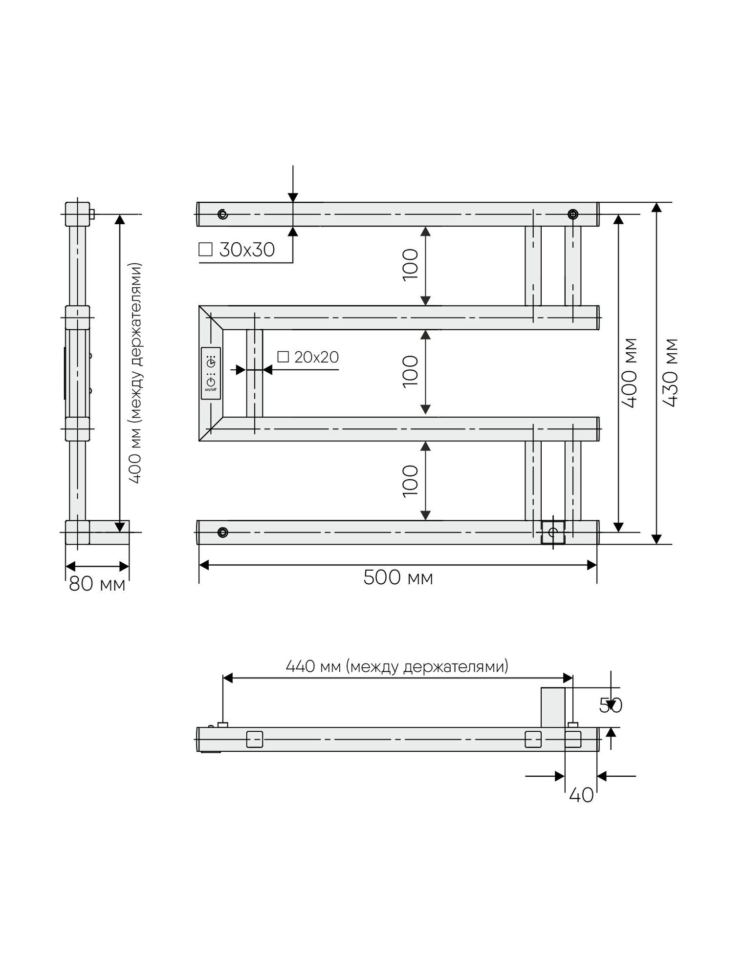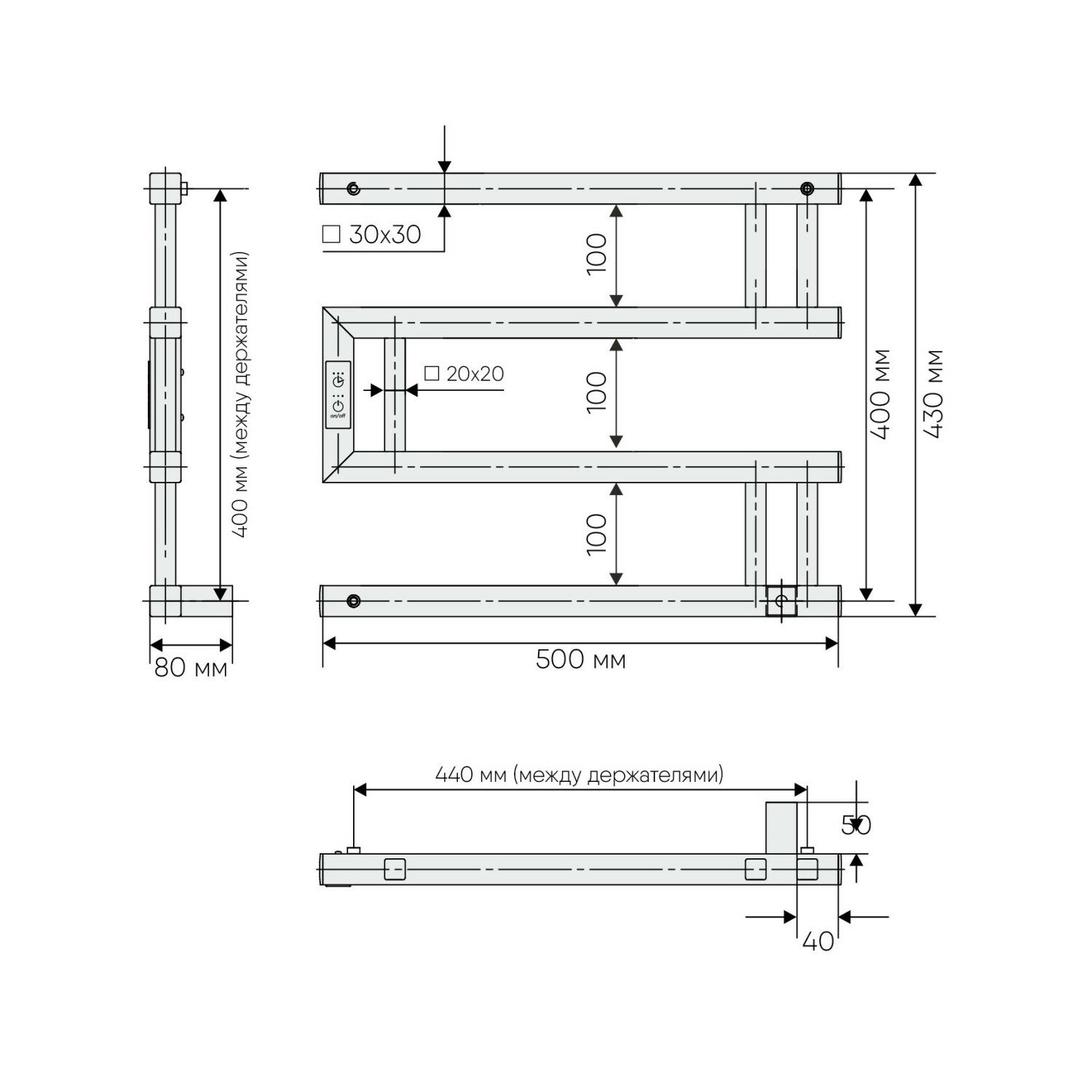 Полотенцесушитель электрический с терморегулятором INDIGO 40/50, правый, квадратная труба