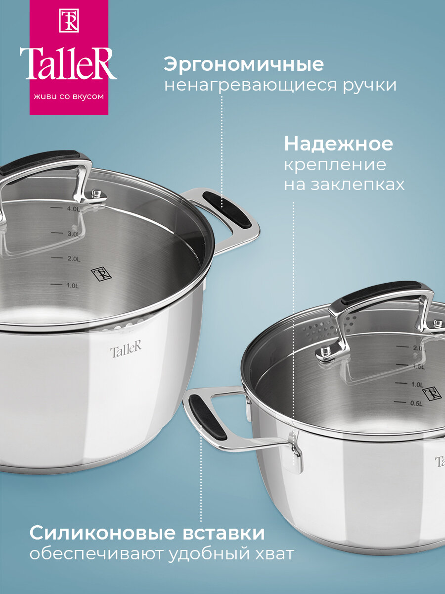 Набор кастрюль Taller Льюис TR-11071 9 пр. серебристый 9 шт. 7 кг