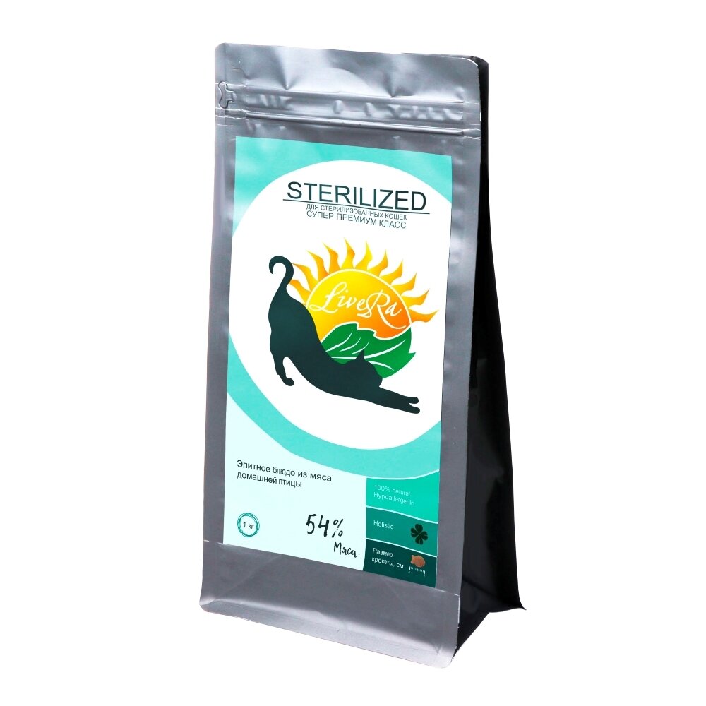 LiveRA Полнорационный сухой корм для стерилизованных кошек STERILIZED, 1,2 кг- элитное блюдо из мяса домашней птицы