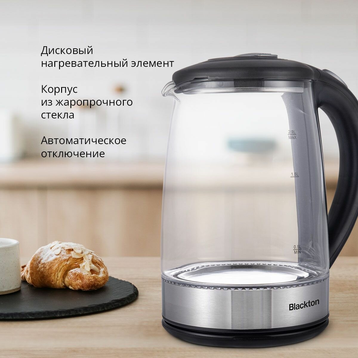 BLACKTON Bt KT2026G Черный-Сталь Чайник