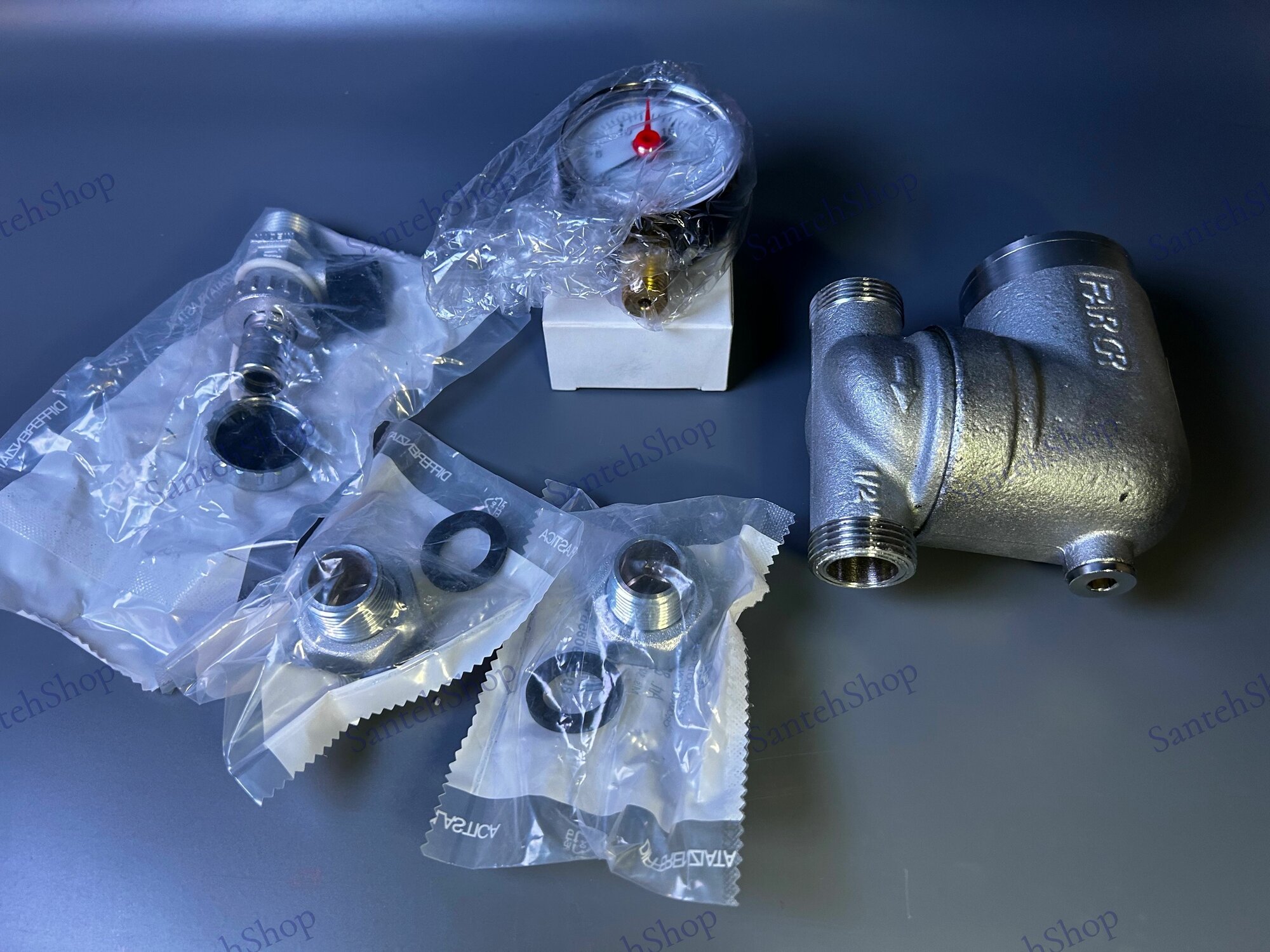 Фильтр Far 1/2" НР-BР, с манометром, 100мкм, Max: 95 °C, 25 бар