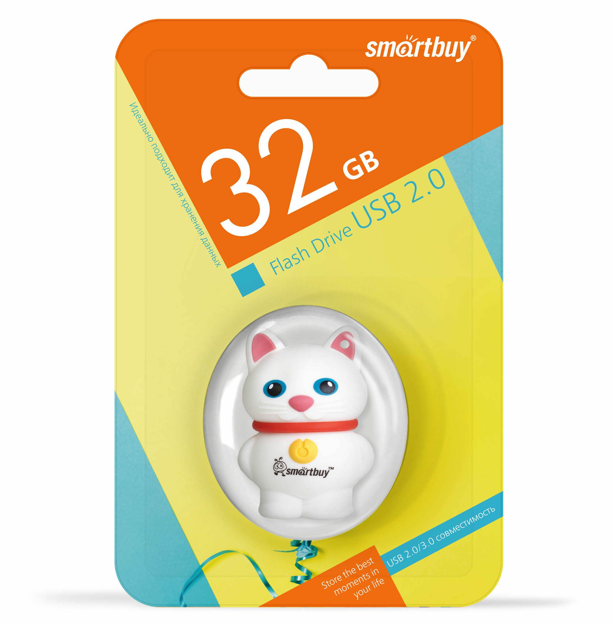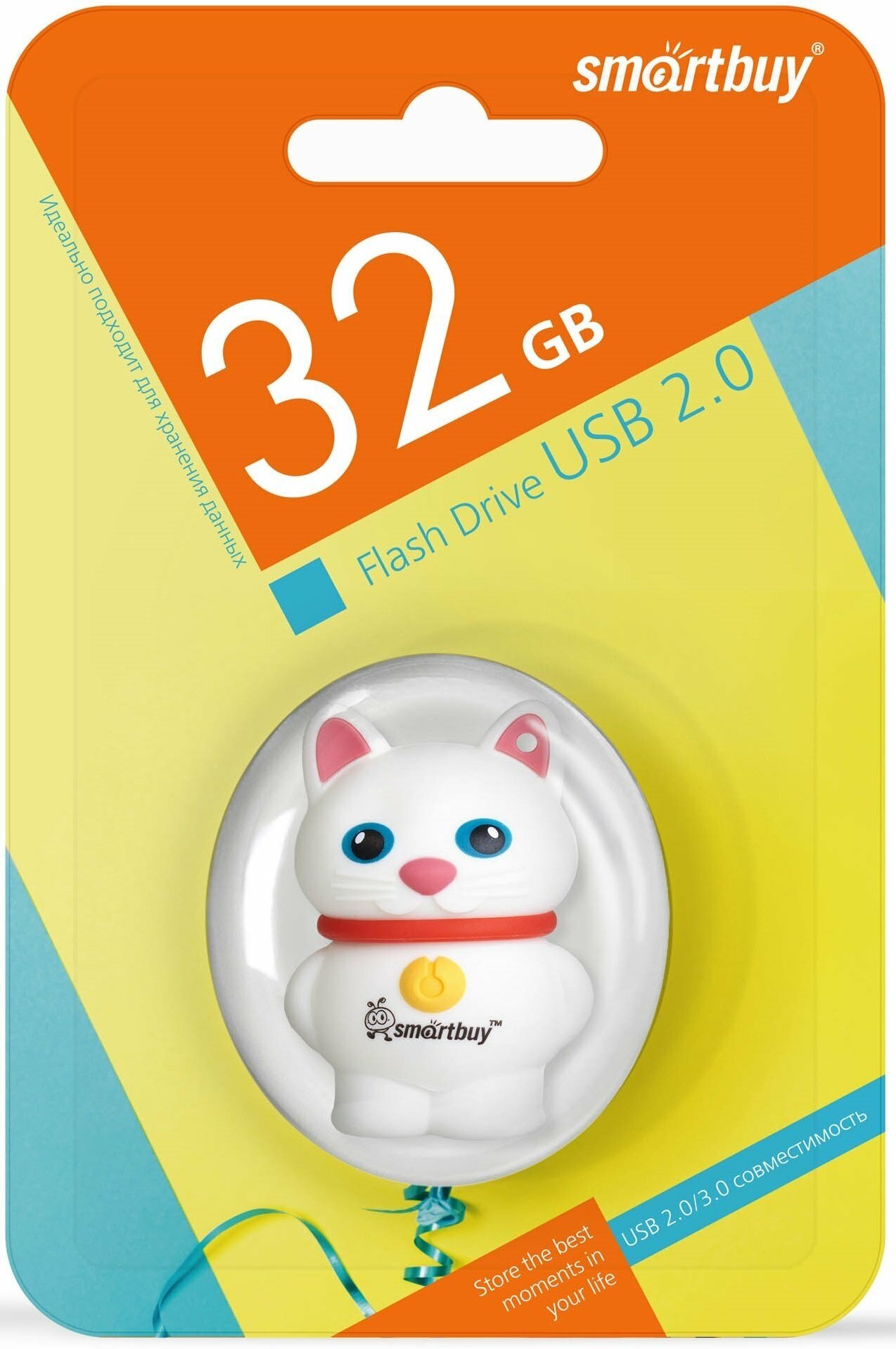 Флешка Smartbuy Wild series"Котенок", 32 Гб, USB 2.0, чт до 25 Мб/с, зап до 15 Мб/с, белая Smartbuy
