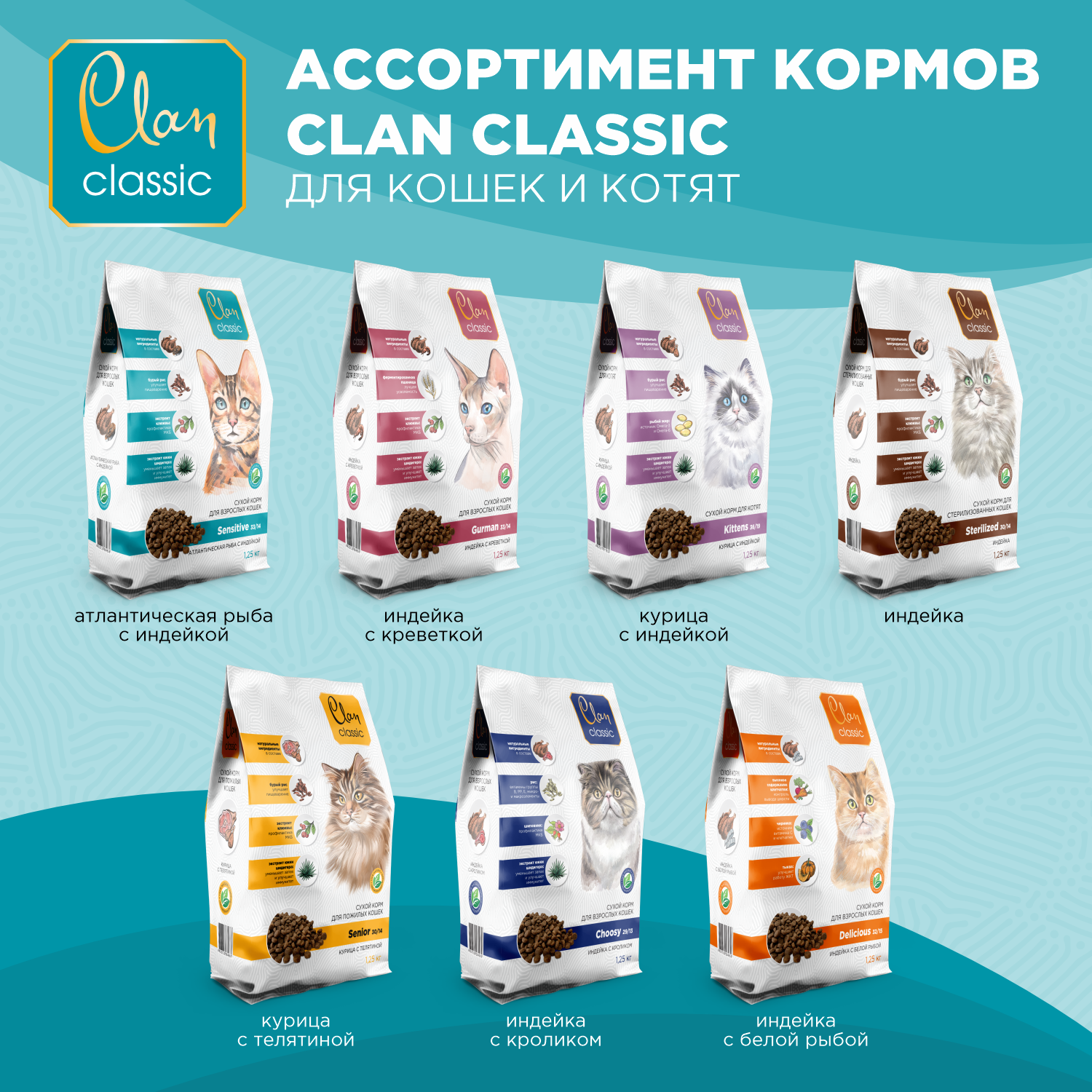 CLAN CLASSIC Delicious 32/15 корм сухой для кошек Индейка и Белая рыба 1.25кг