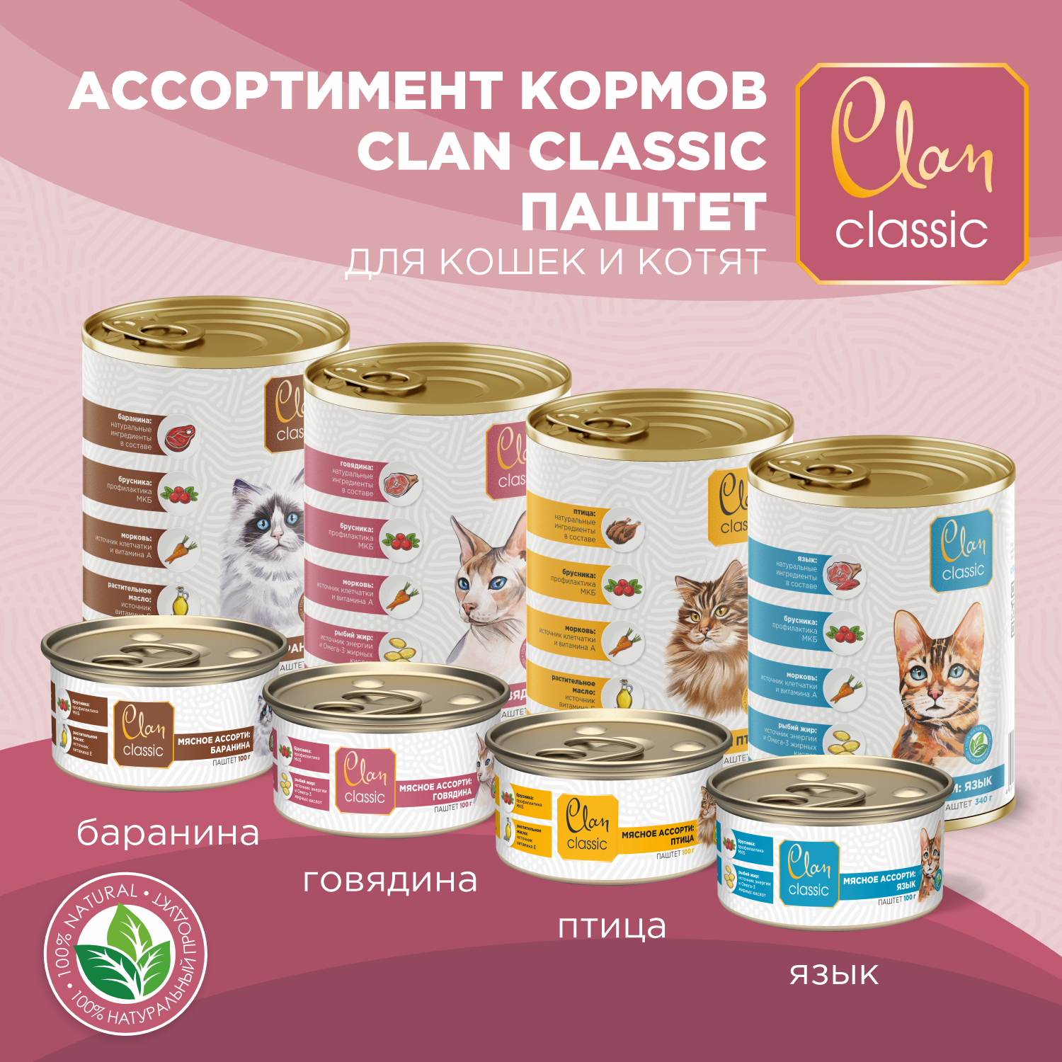 СохранитьClan CLASSIC консервы 100гр паштет Мясное ассорти с говядиной для кошек (8 банок) интересное: