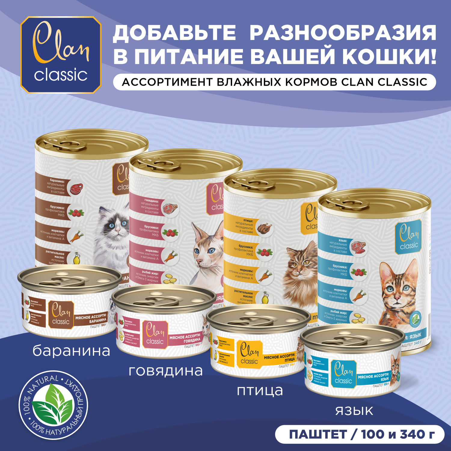 Clan CLASSIC консервы 100гр паштет Мясное ассорти с говядиной для кошек (8 банок)