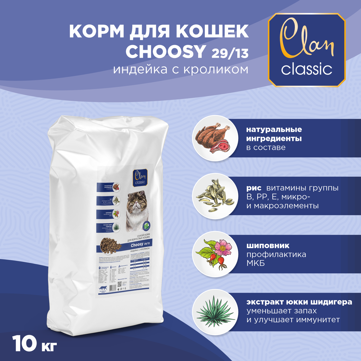 CLAN CLASSIC Choosy 23/13 корм сухой для кошек Индейка и Кролик 10кг
