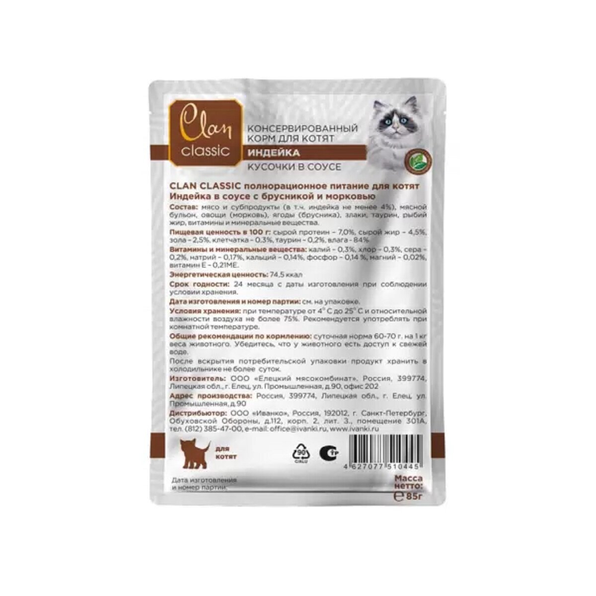 Купить Clan CLASSIC пауч кусочки в соусе Индейка с брусникой и морковью для котят 85гр (14 паучей)