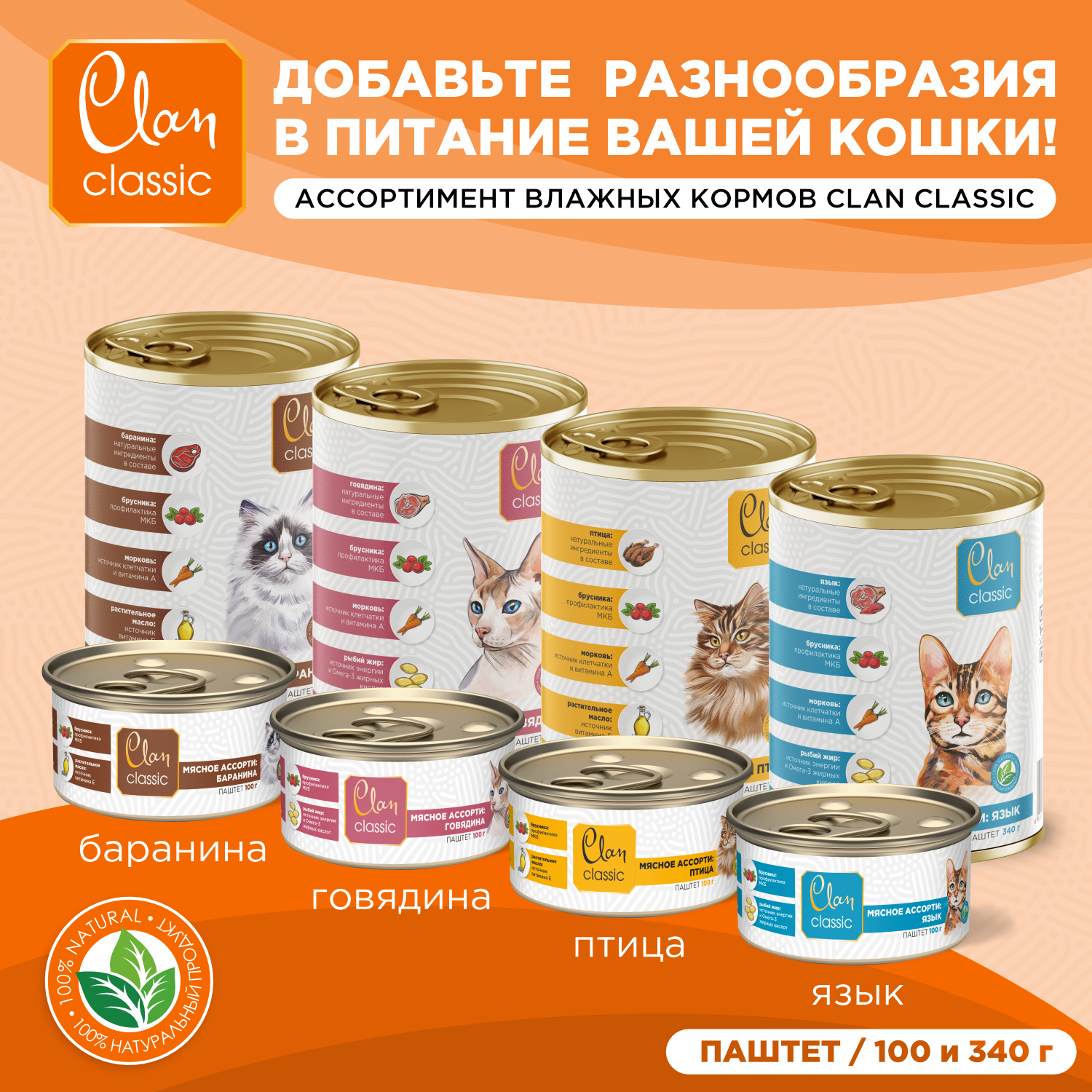 Clan CLASSIC паштет для кошек 100 с языком (8 банок)