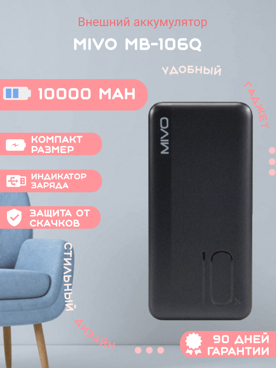 Внешний аккумулятор Mivo MB-106Q 10000 mAh, черный