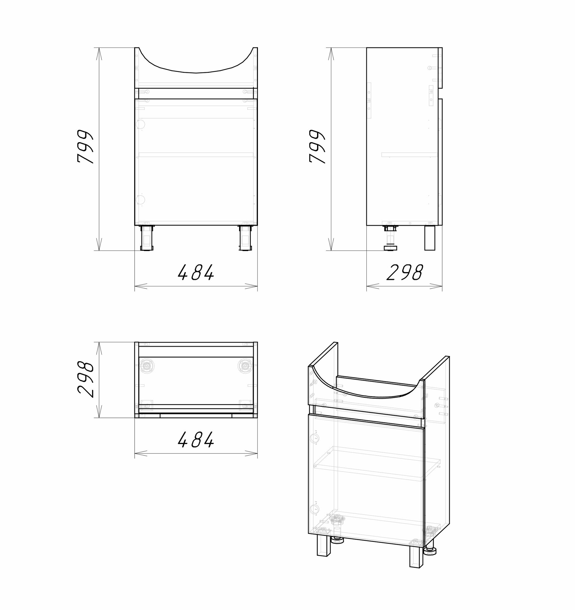 Тумба с раковиной для ванной Кристалл 50 белая.