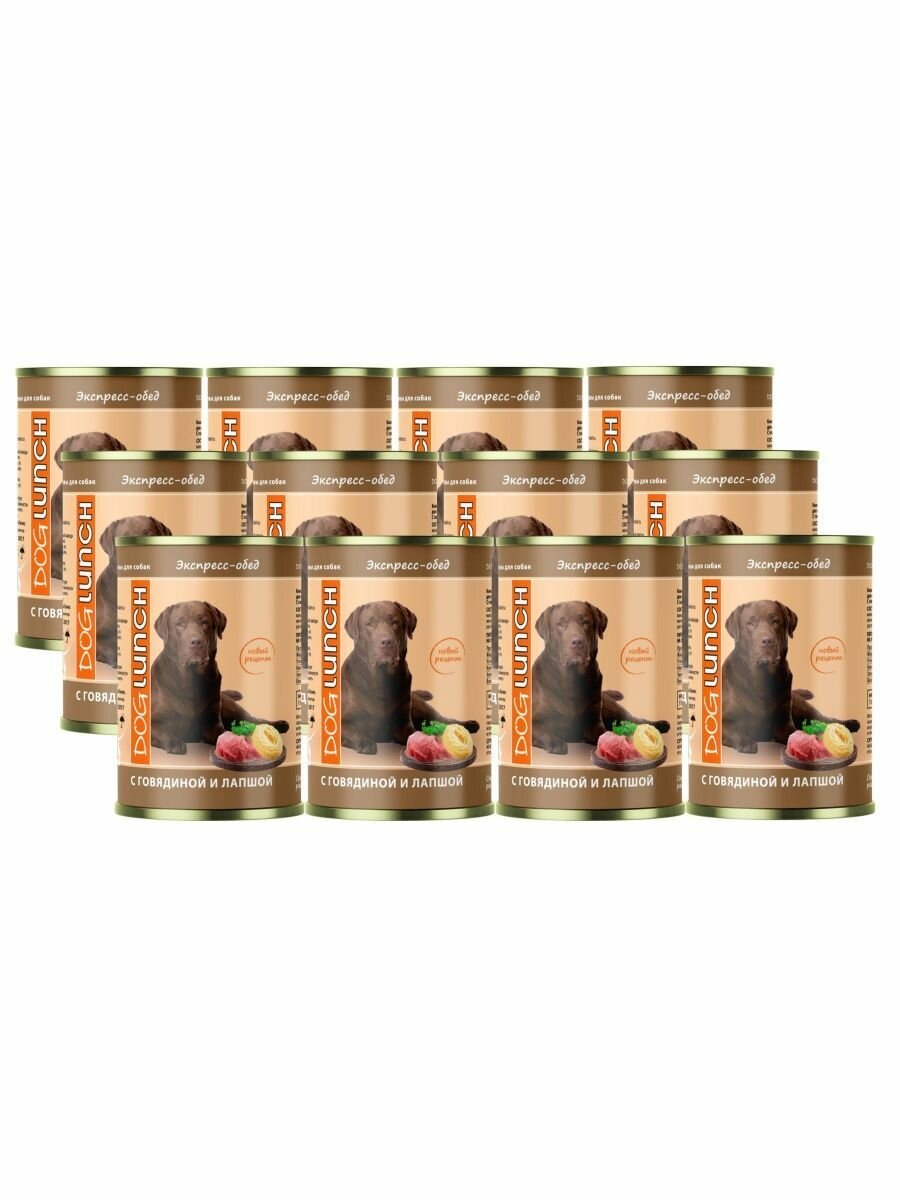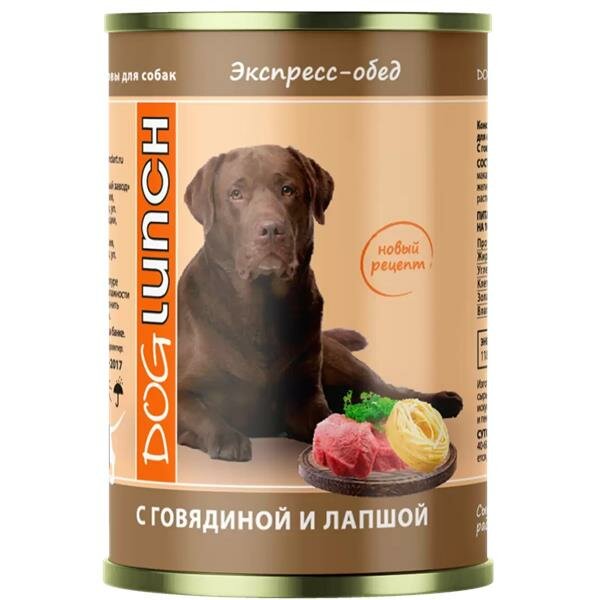 Купить Dog Lunch Экспресс-обед, консервы для собак с говядиной и лапшой 410г х12шт