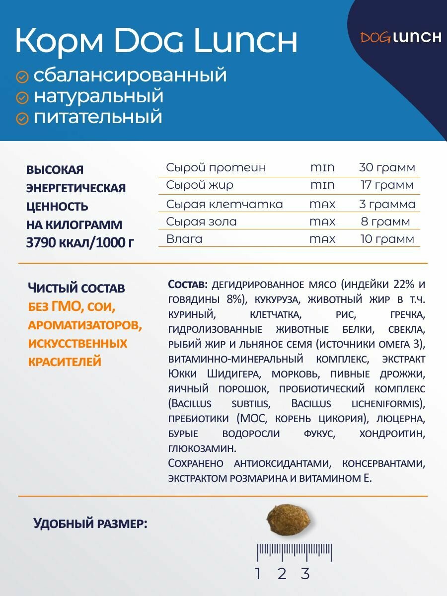 Dog Lunch Корм сухой Премиум для взрослых собак с Индейкой и рисом 2 кг, 1 шт