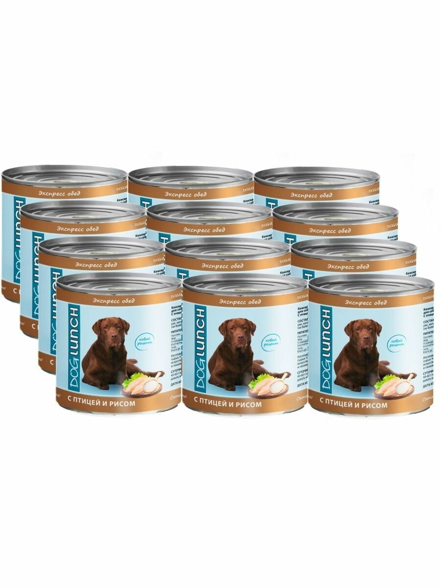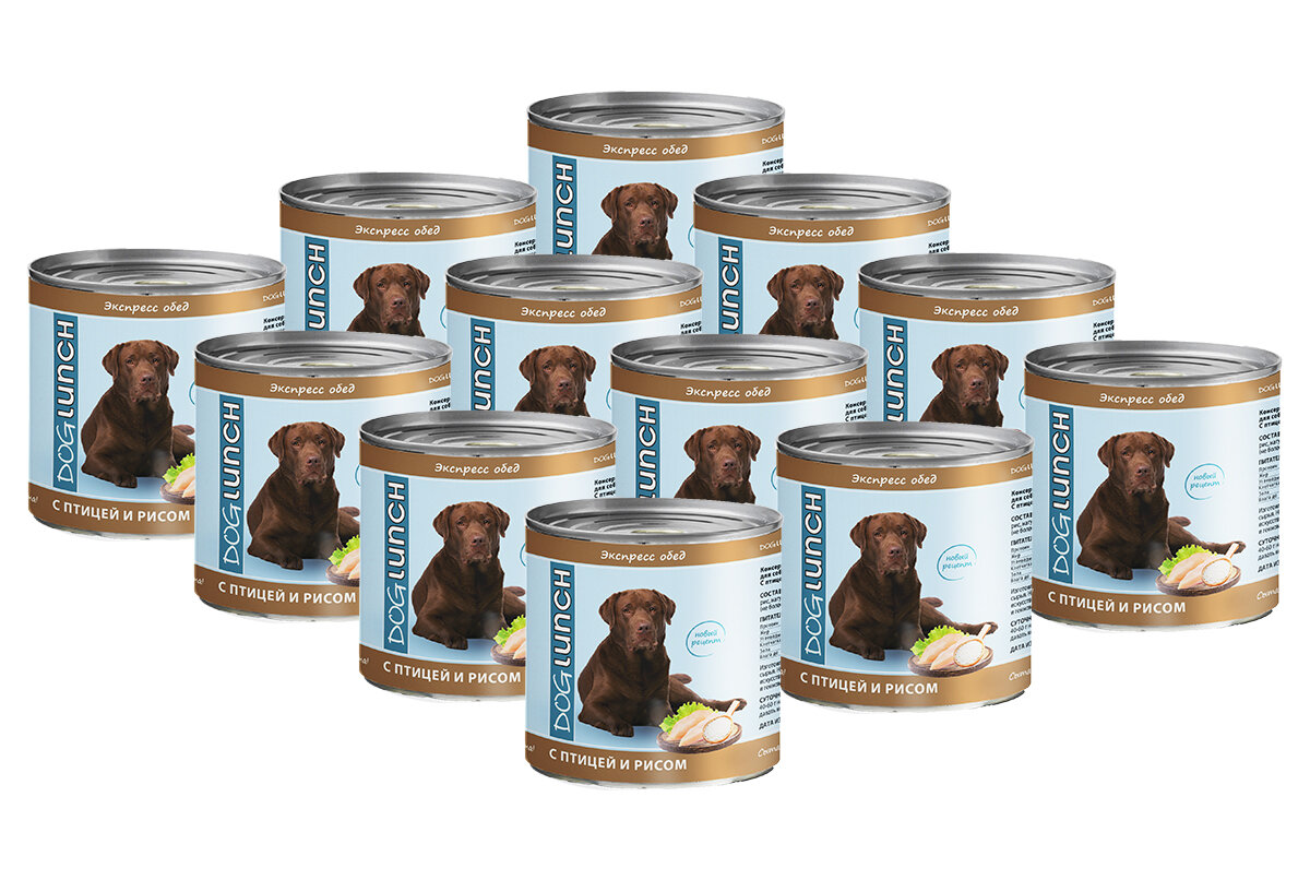 Купить Dog Lunch Экспресс-обед, консервы для собак с птицей и рисом 750г х12шт