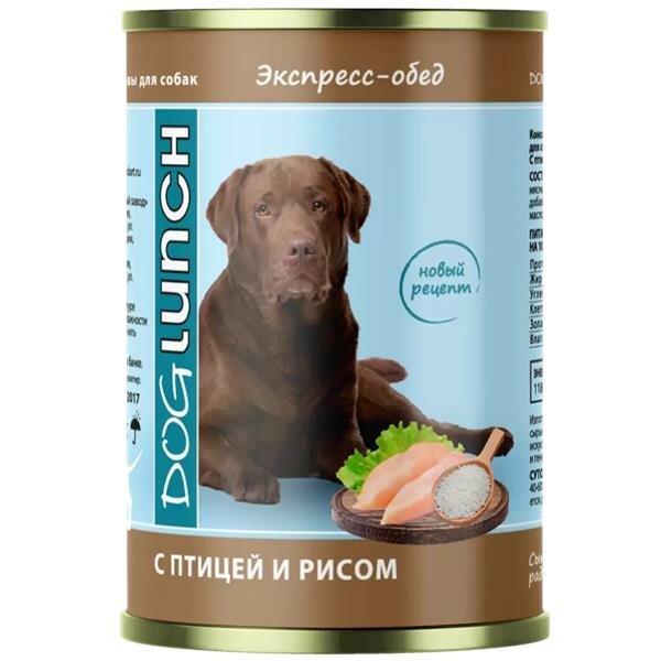 Dog Lunch Экспресс-обед, консервы для собак с птицей и рисом 410г х12шт