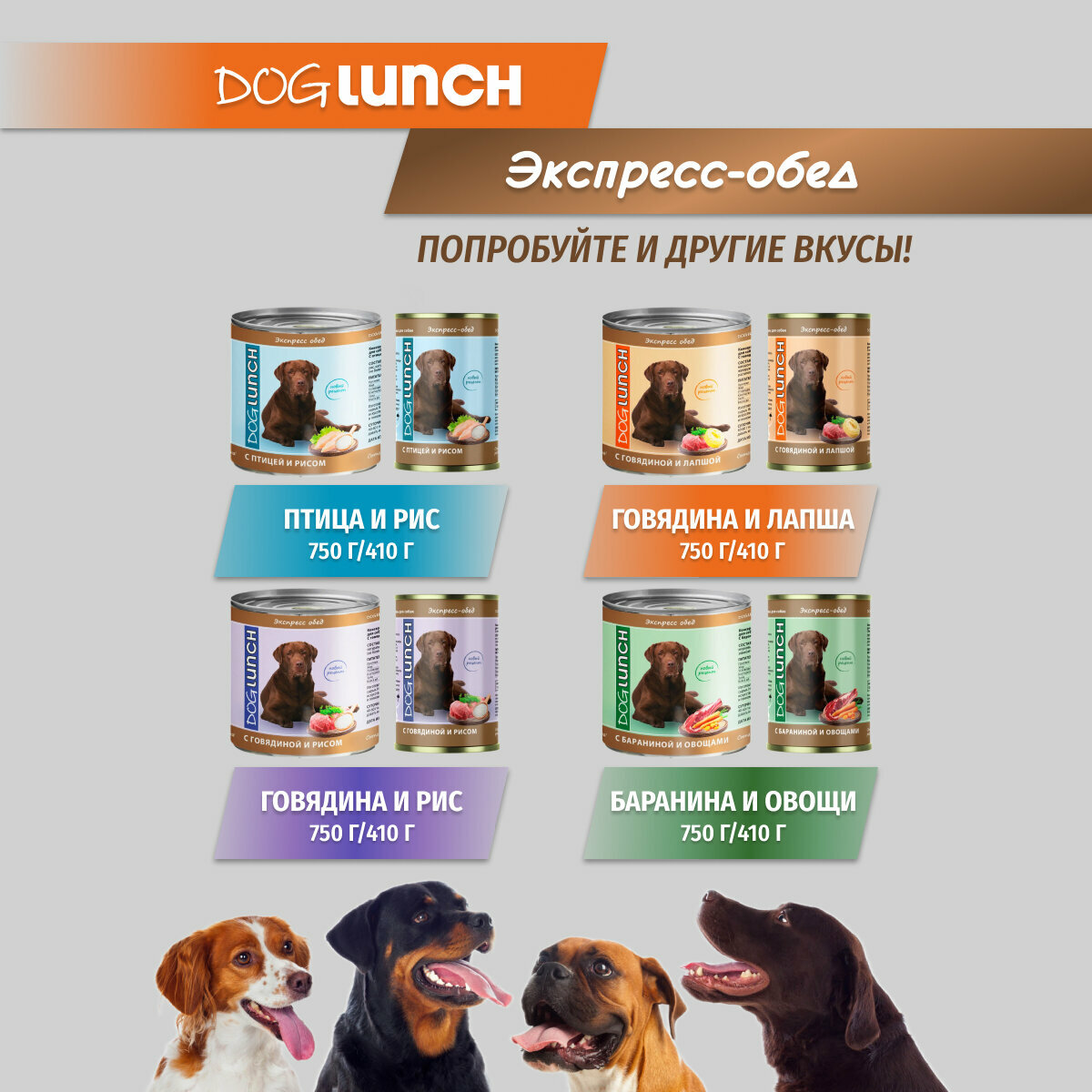Dog Lunch Консервы для собак Экспресс обед с Говядиной и рисом, 750 г