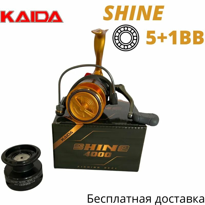 Катушка рыболовная KAIDA SHINE 4000 безынерционная, Кайда, 5+1 подшипников