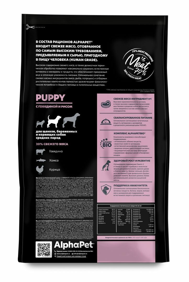 Купить AlphaPet Superpremium Puppy Medium Сухой корм для щенков, беременных и кормящих собак средних пород Говядина и Рис, 7кг