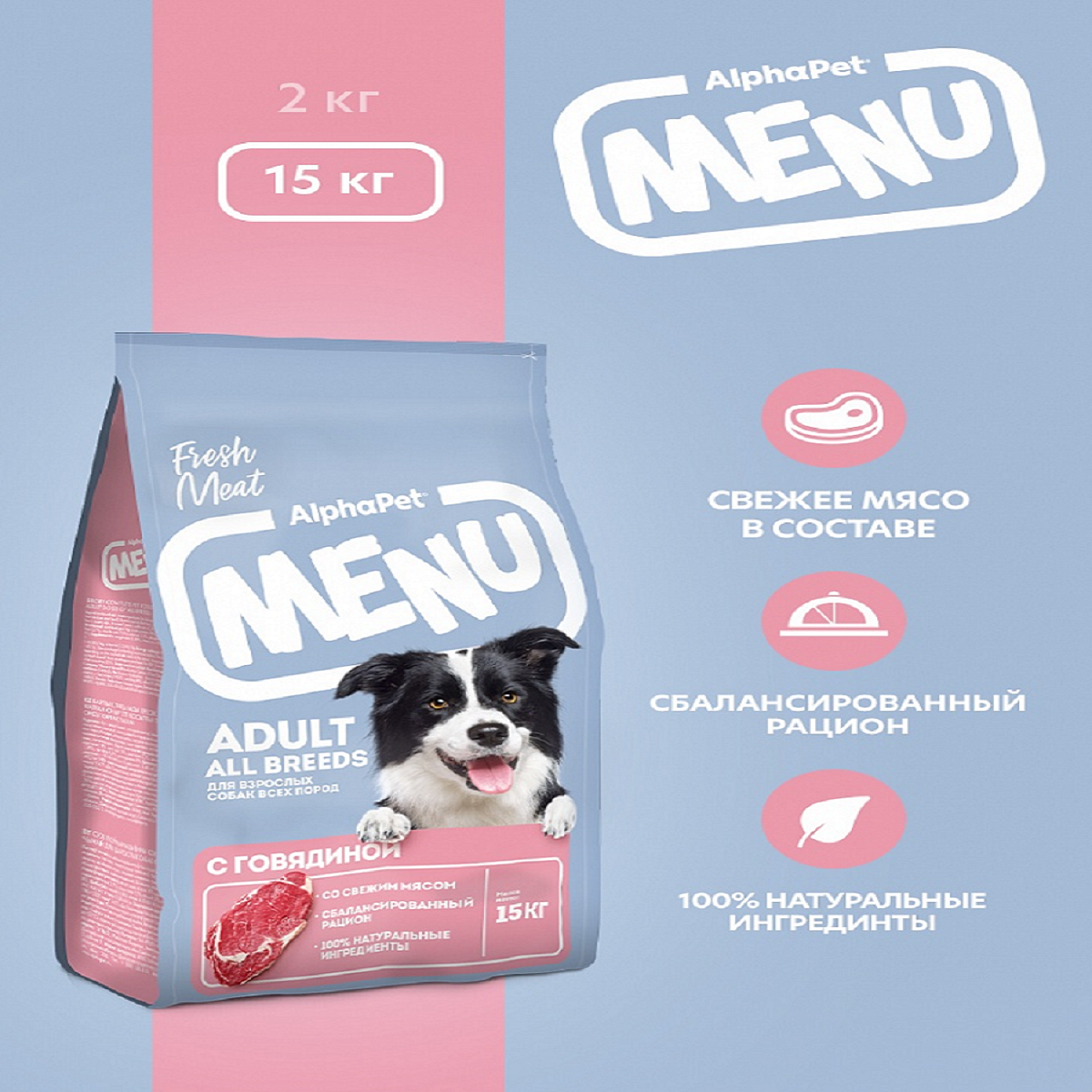 Альфа Пет 52758 MENU сух. двзрослых собак всех пород с Говядиной 15кг, 108350 (2 шт)
