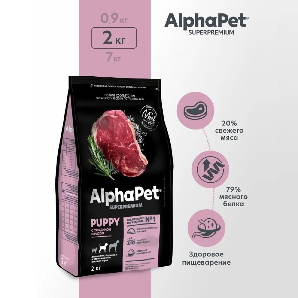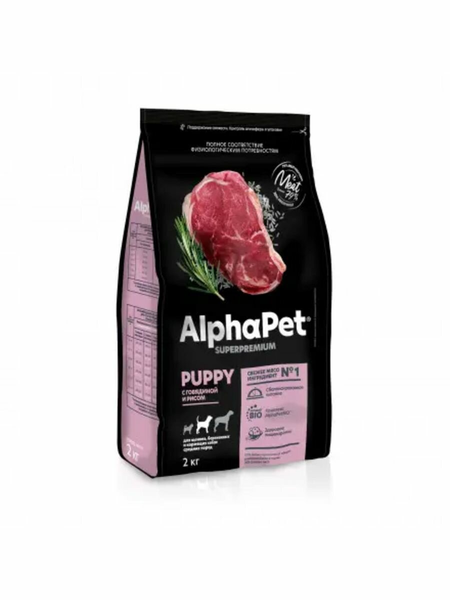 Сухой корм AlphaPet для щенков средних пород с говядиной и рисом 2 кг