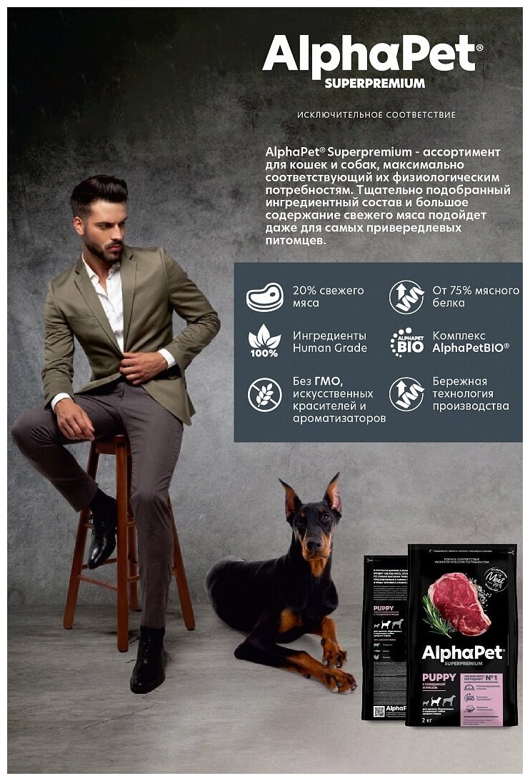AlphaPet Superpremium - Сухой корм для щенков крупных пород с 6 месяцев до 1.5 лет, с Говядиной и Рисом (3 кг)
