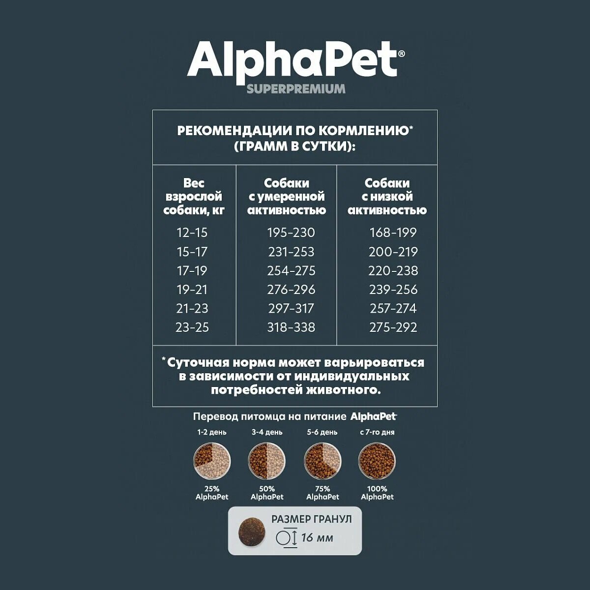СохранитьСухой корм AlphaPet Superpremium для собак средних пород с говядиной и потрошками 7кг интересное: