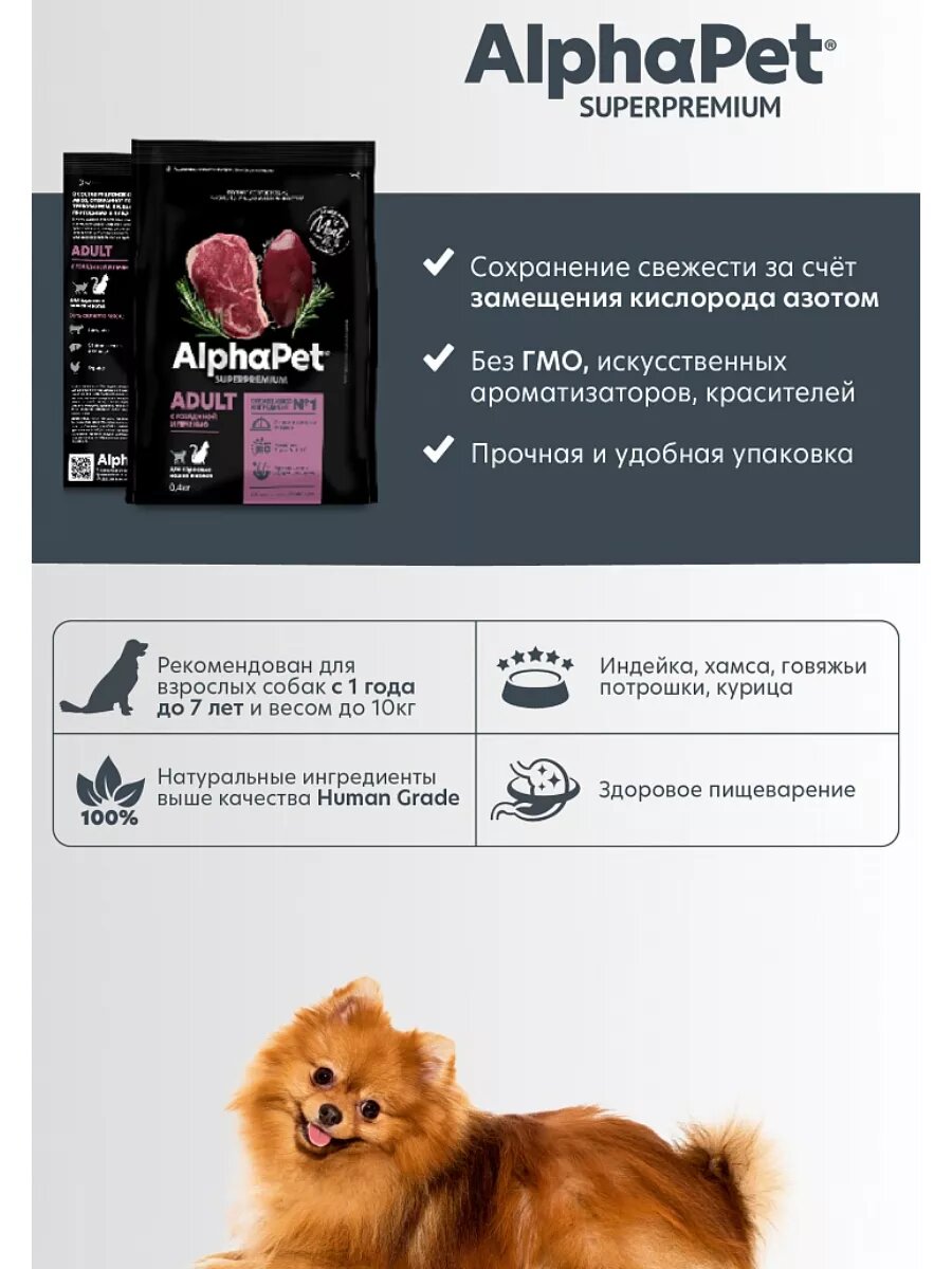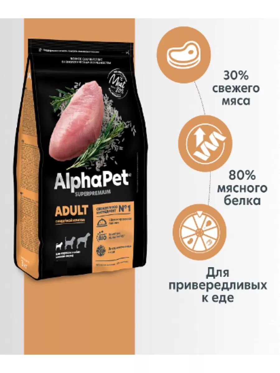 Купить Корм AlphaPet Superpremium для собак малых пород, c индейкой и рисом, 1.5 кг