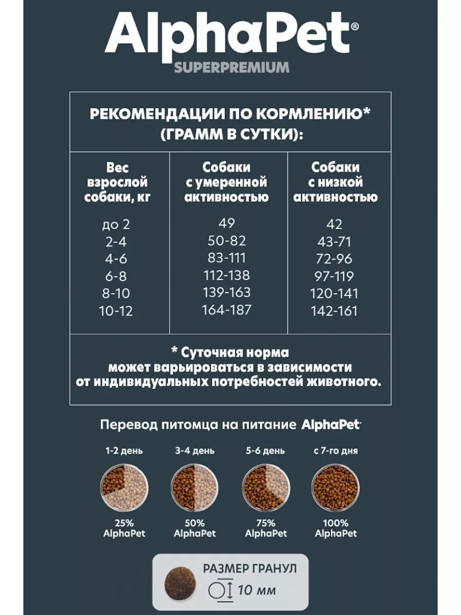 AlphaPet Superpremium сухой полнорационный корм для взрослых собак мелких пород с индейкой и рисом - 500 г