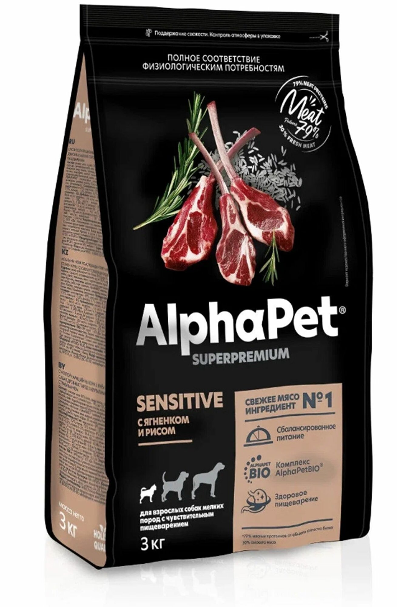 AlphaPet Superpremium 1шт -3кг с ягненком и рисом сухой для собак мелких пород с чувствительным пищеварением