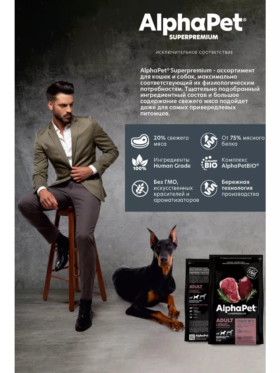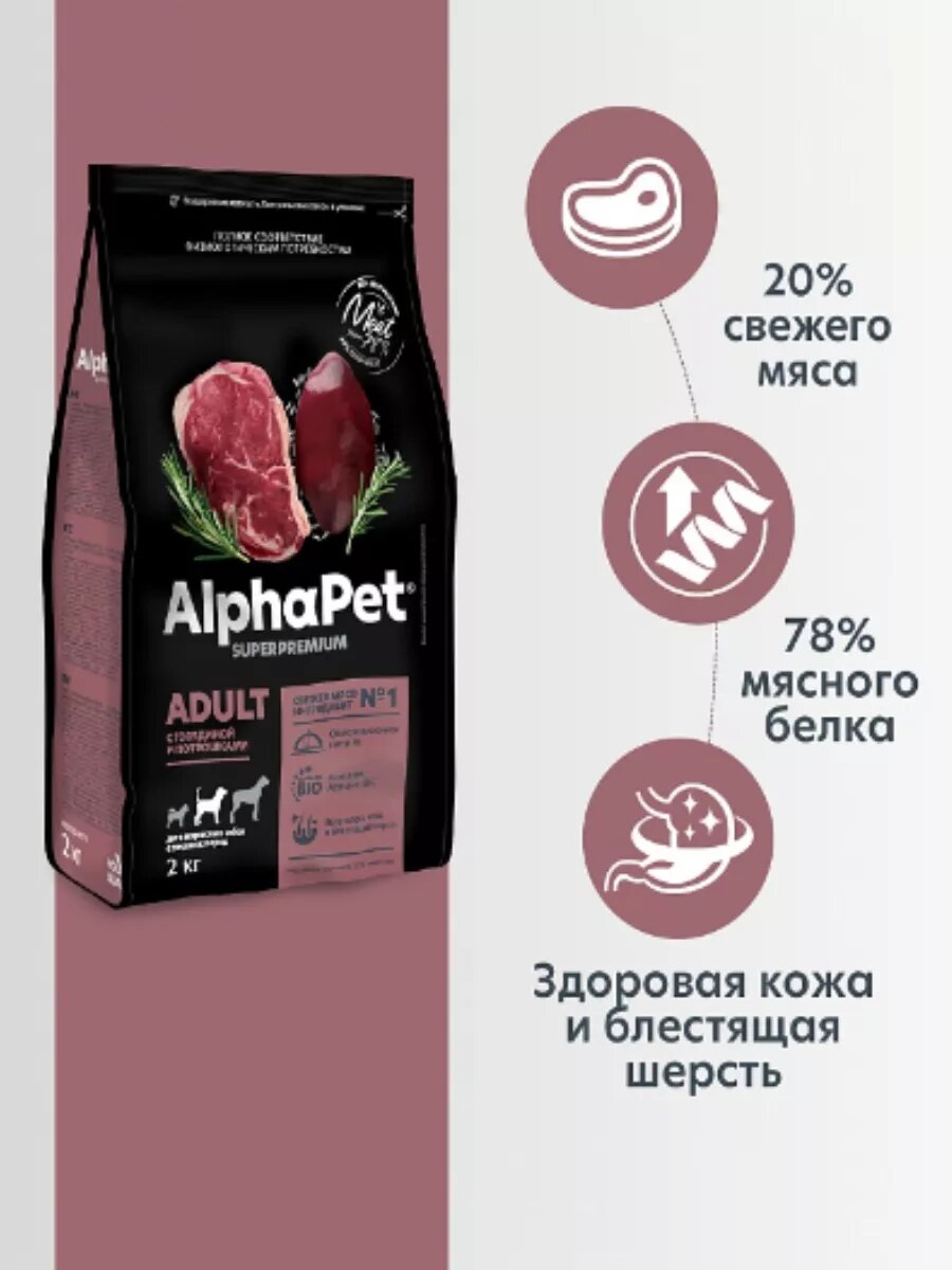 Сухой корм AlphaPet для взрослых собак средних пород с говядиной и потрохами 2 кг