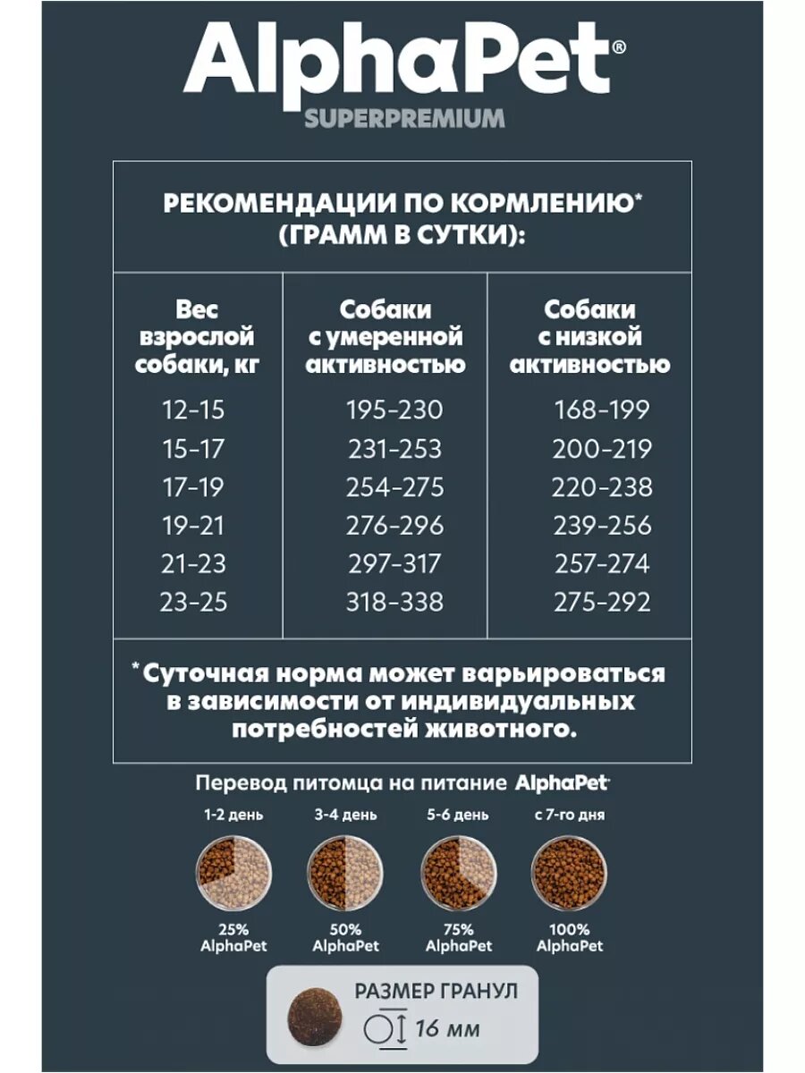 ALPHAPET SUPERPREMIUM 12 кг сухой корм для щенков до 6 месяцев, беременных и кормящих собак крупных пород с говядиной и рубцом, 82979 (1 шт)