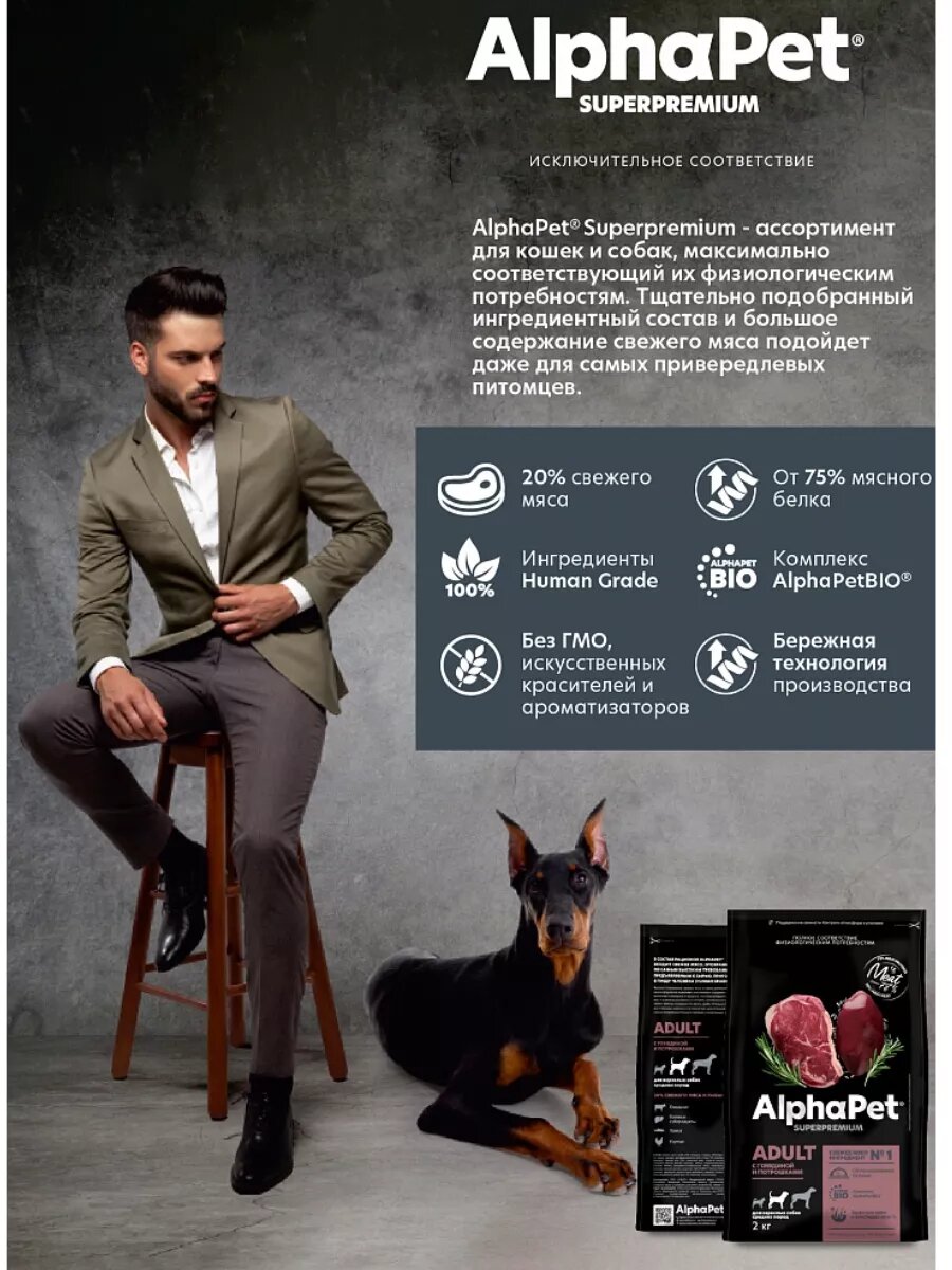 AlphaPet Superpremium Корм сухой с говядиной и потрошками для взр. собак кр. пород 12 кг