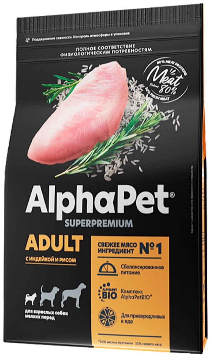 ALPHAPET SUPERPREMIUM Сухой корм для взрослых собак мелких пород с Индейкой и Рисом