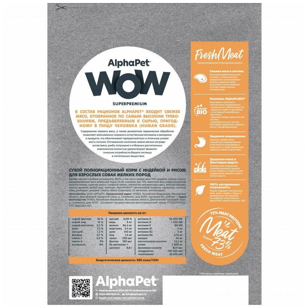 Купить ALPHAPET WOW SUPERPREMIUM 1,5 кг сухой корм для взрослых собак мелких пород с индейкой и рисом