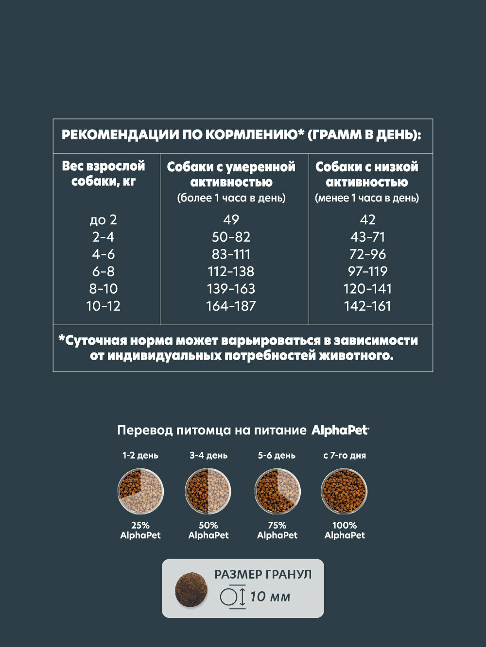 AlphaPet Superpremium сухой полнорационный корм для взрослых собак мелких пород с индейкой и рисом - 500 г
