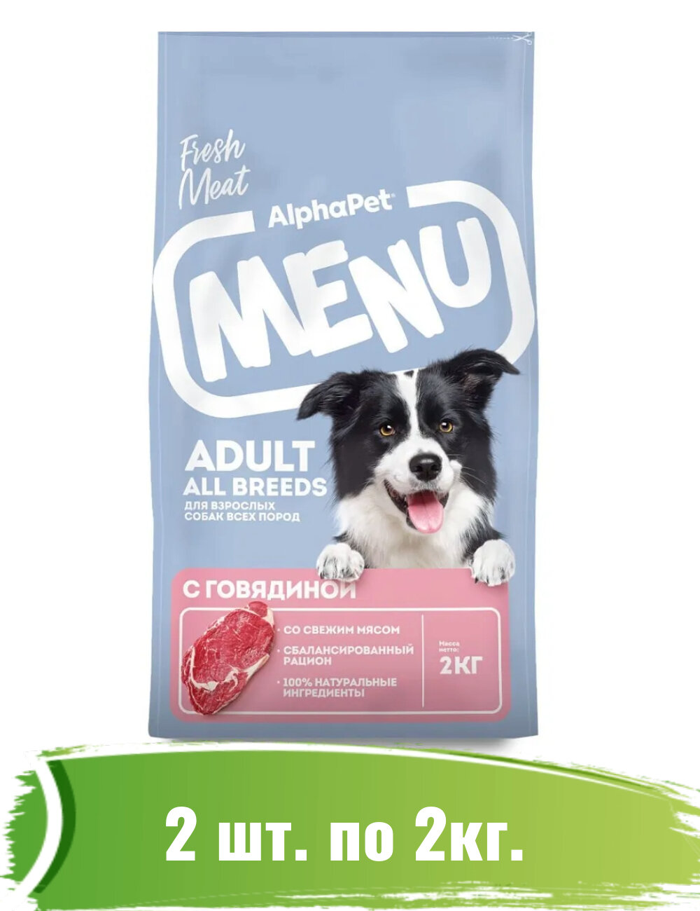 Купить AlphaPet Menu 2шт х 2кг сухой корм говядина для собак