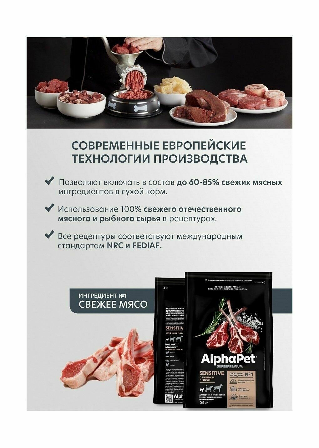 ALPHAPET SUPERPREMIUM Сухой корм для собак с чувствительным пищеварением с Бараниной и Потрошками