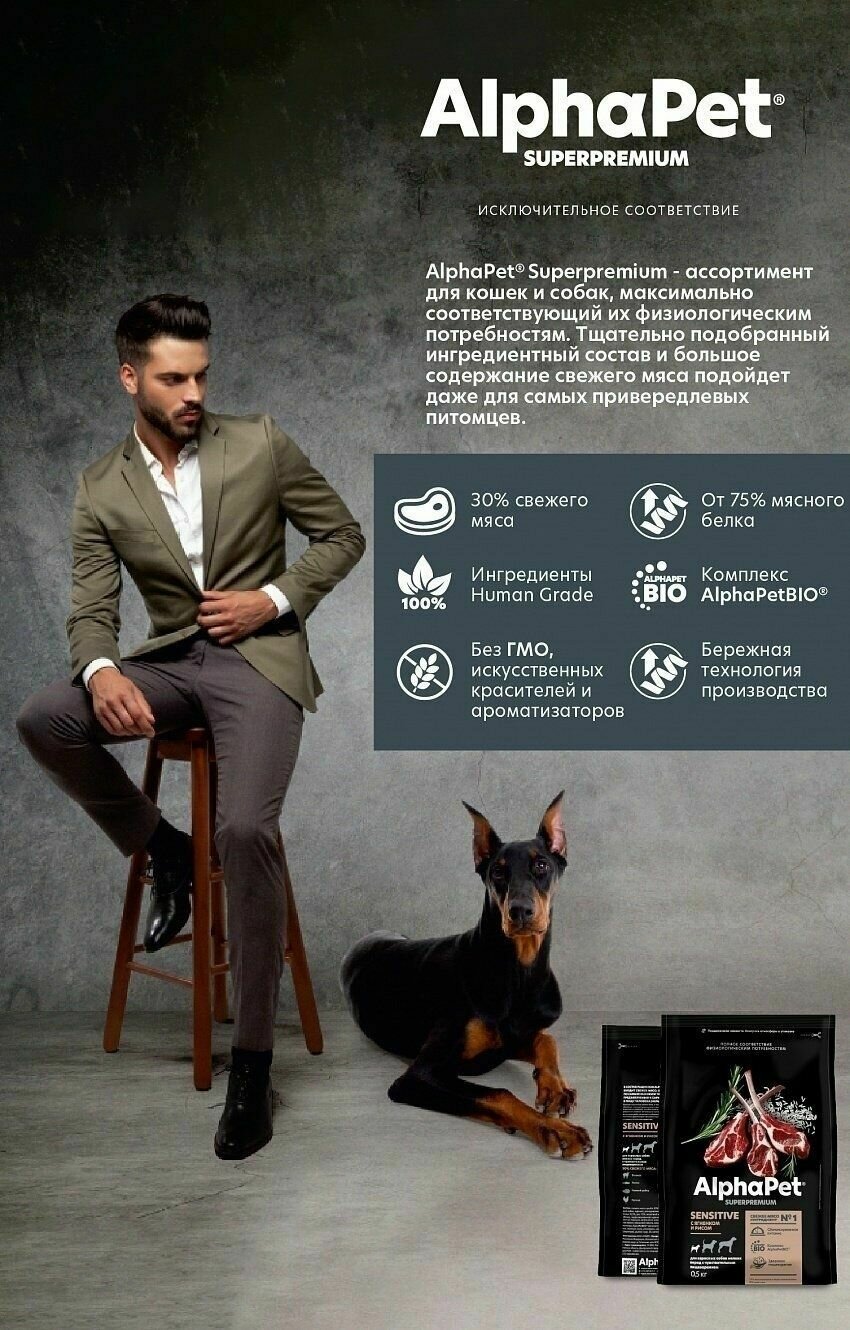 AlphaPet Сухой полнорационный корм Superpremium с ягненком и рисом, для взрослых собак мелких пород с чувствительным пищеварением, 500 гр